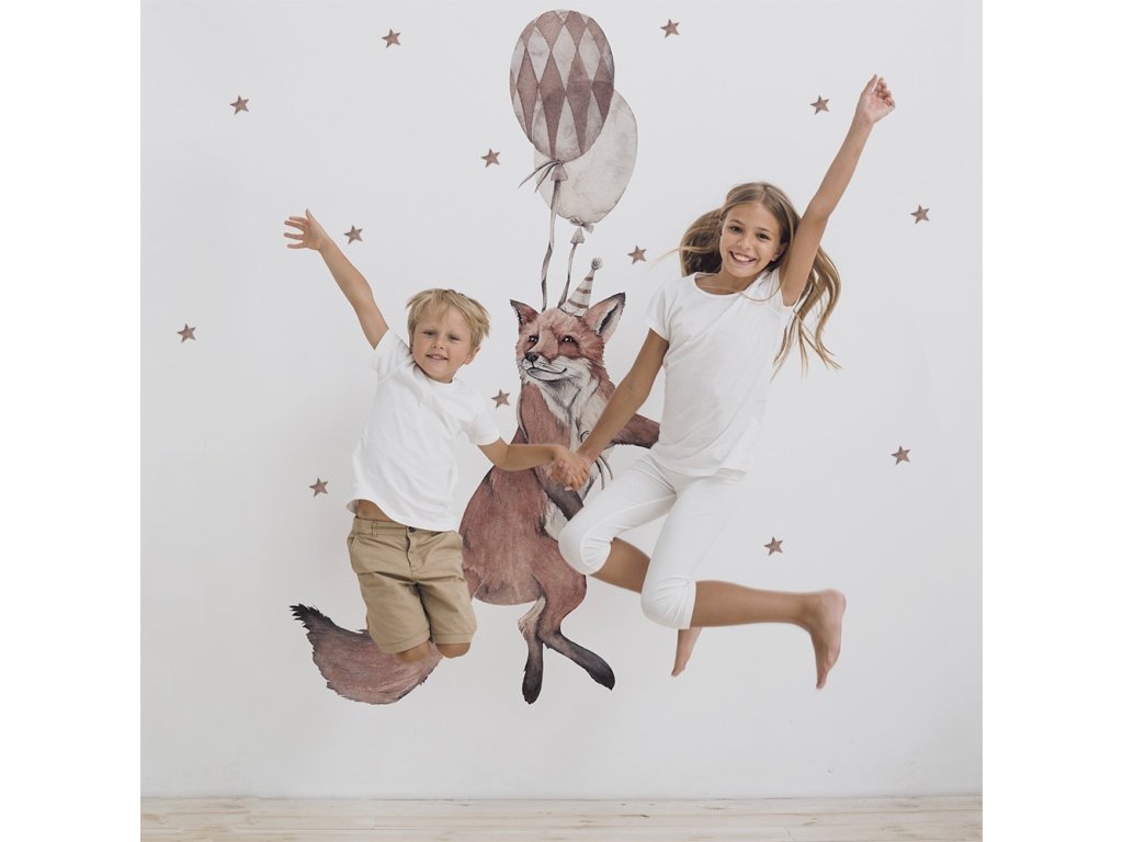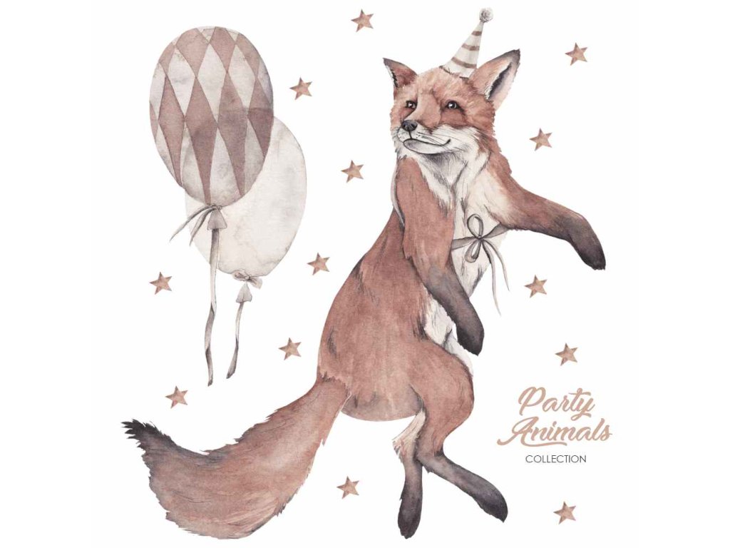 Detská nálepka na stenu Party animals - líška a balóny