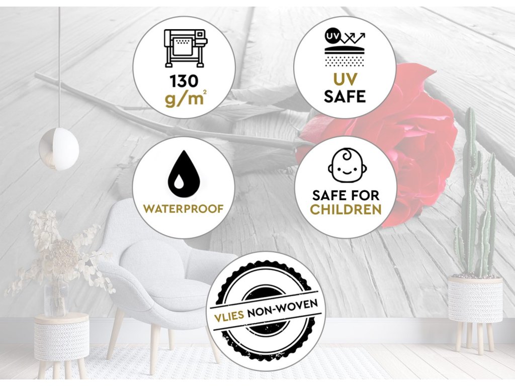 - Naše tapety sú odolné voči UV žiareniu a vode a dajú sa čistiť vlhkou handričkou.