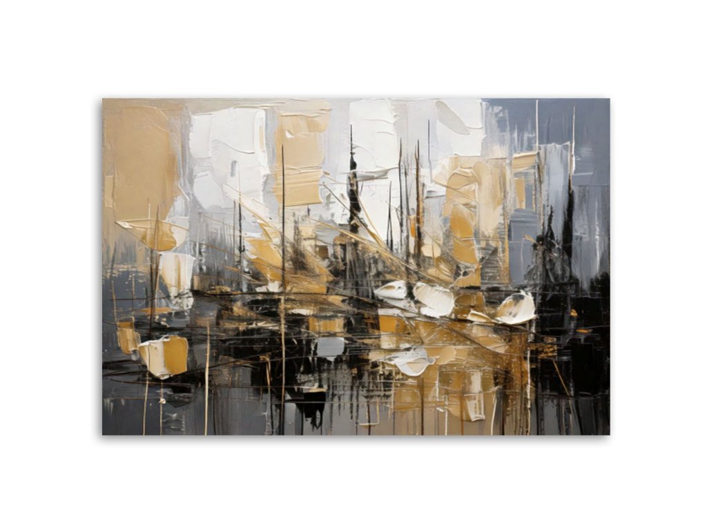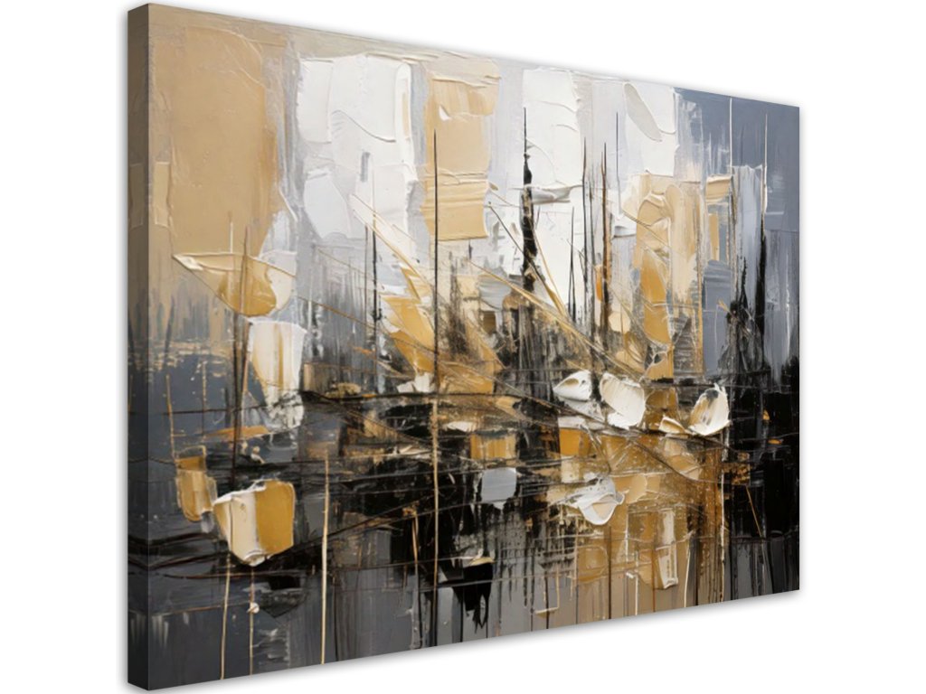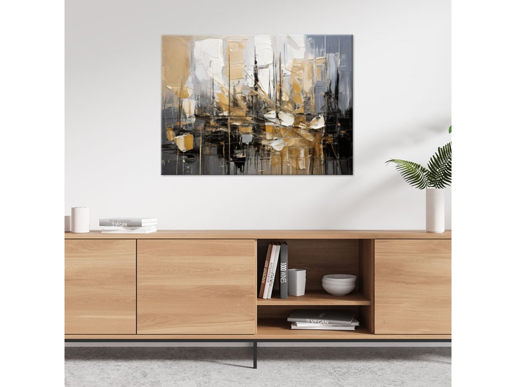 Obraz na plátne Abstrakcia v odtieňoch šedej a béžovej s prvkami zlata