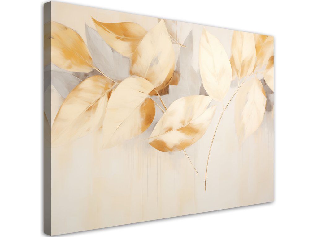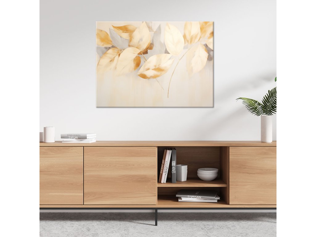 Obraz na plátne Béžové žlté listy vetvy scandi boho