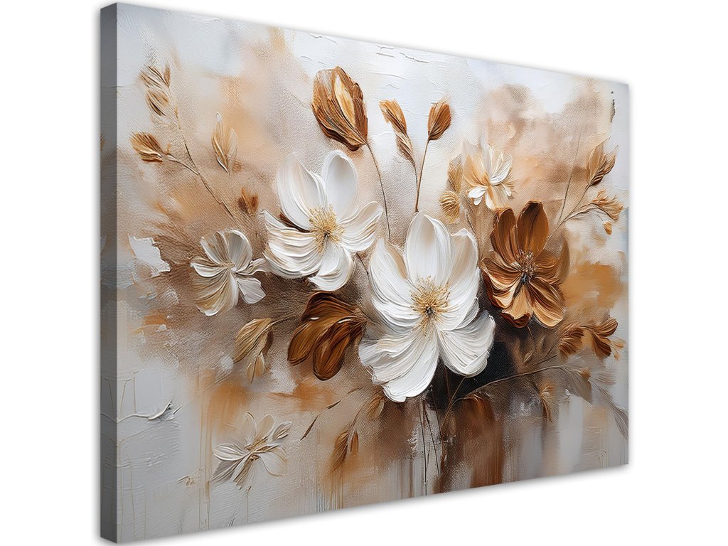 Obraz na plátne Biele hnedé maľované poľné kvety