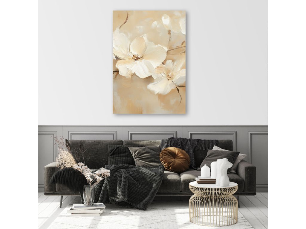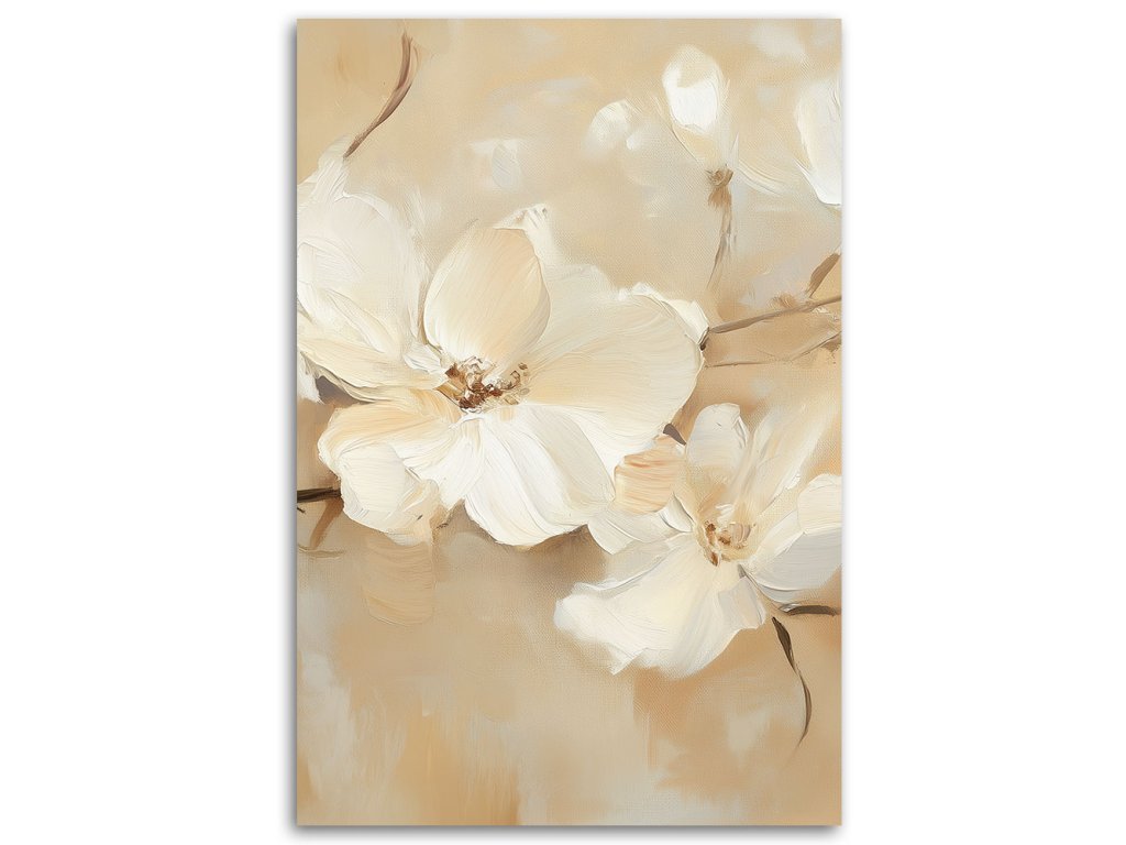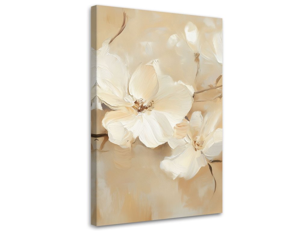 Obraz na plátne Biele kvety na béžovom pozadí