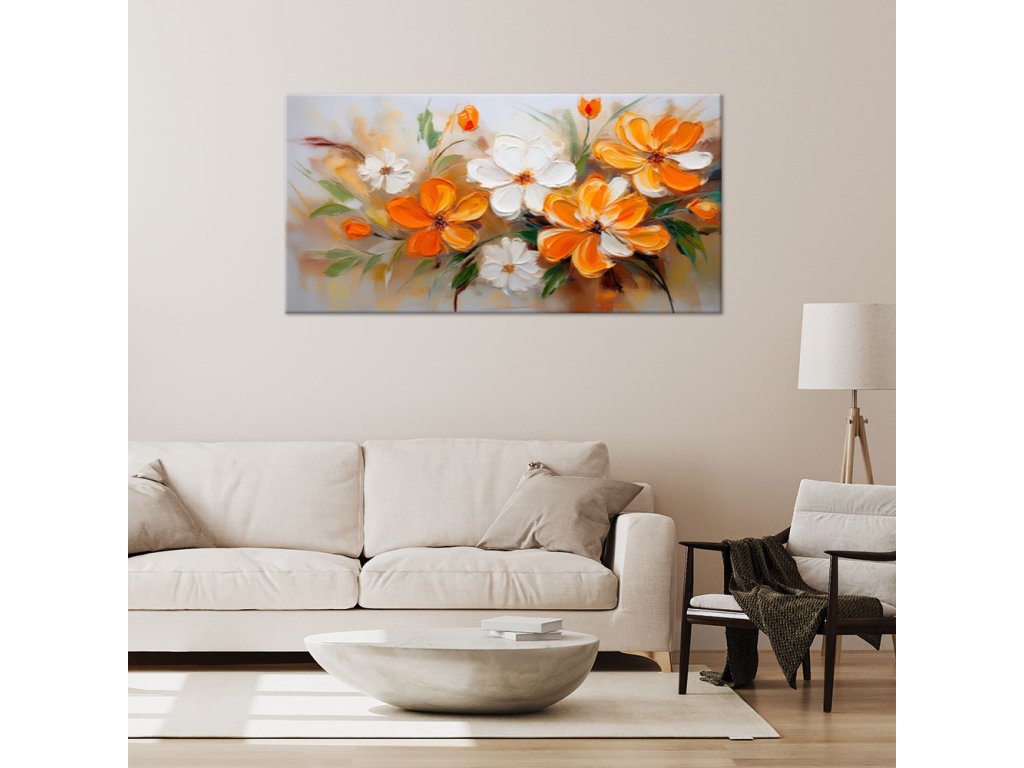 Obraz na plátne Biele oranžové poľné kvety