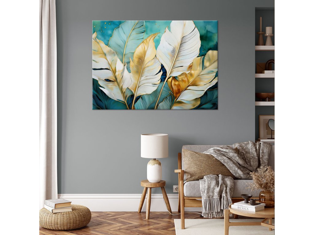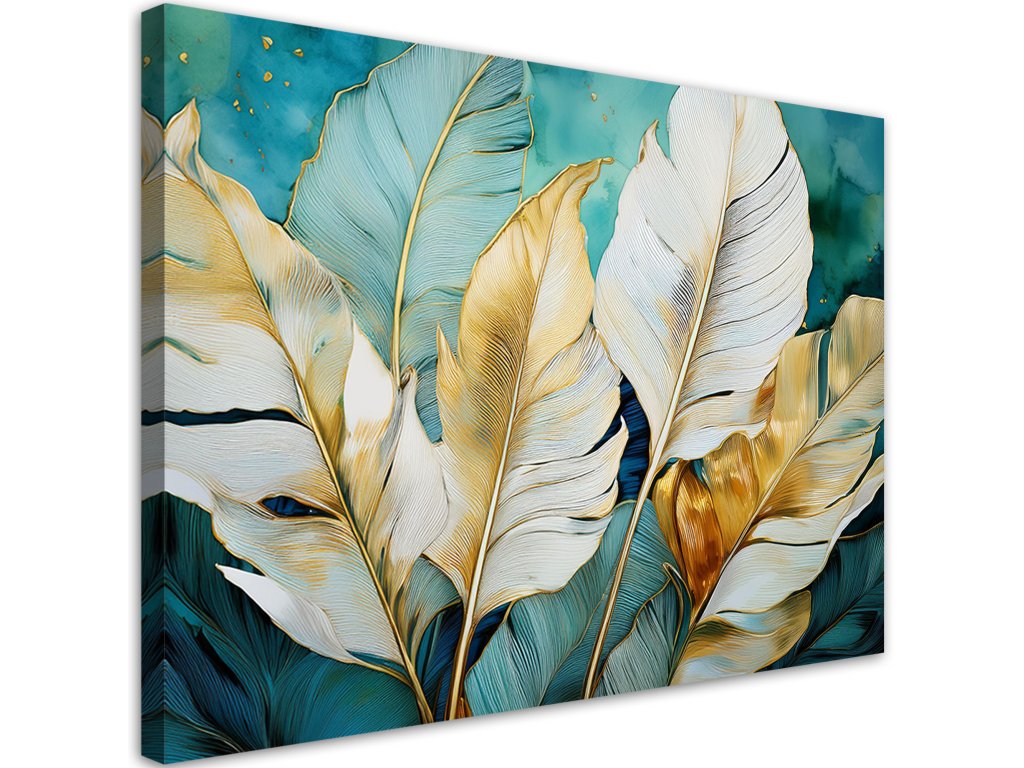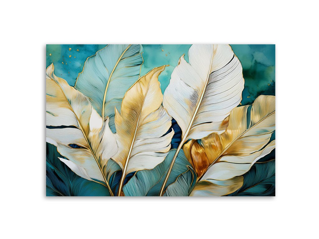 Obraz na plátne Biele zlaté tyrkysové banánové listy