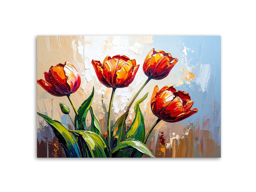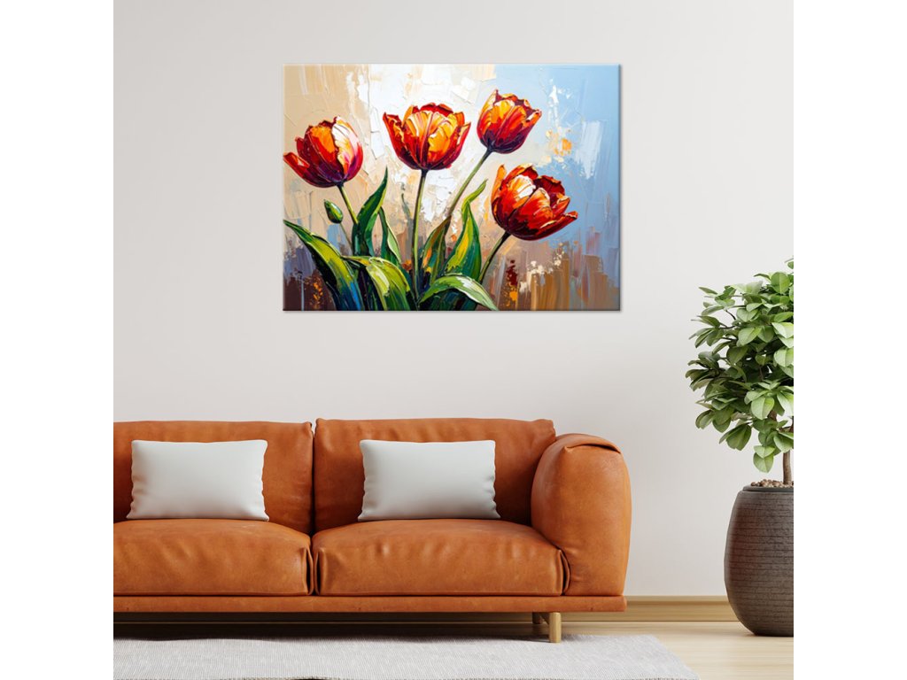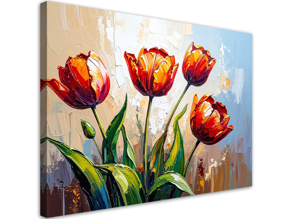 Obraz na plátne Červené kvety Tulipány na béžovom pozadí imitácia farby