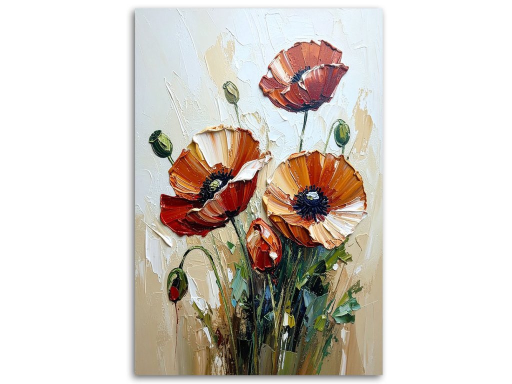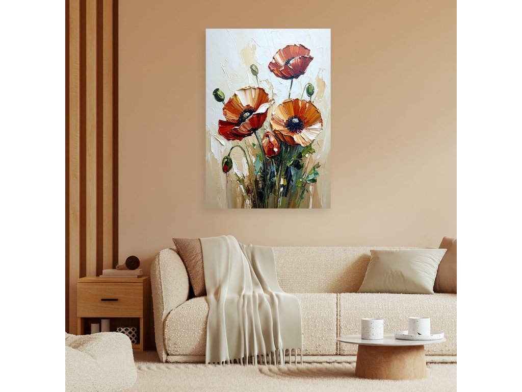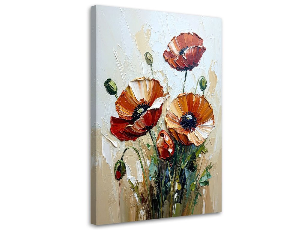 Obraz na plátne Červené maky Kvety na béžovom pozadí