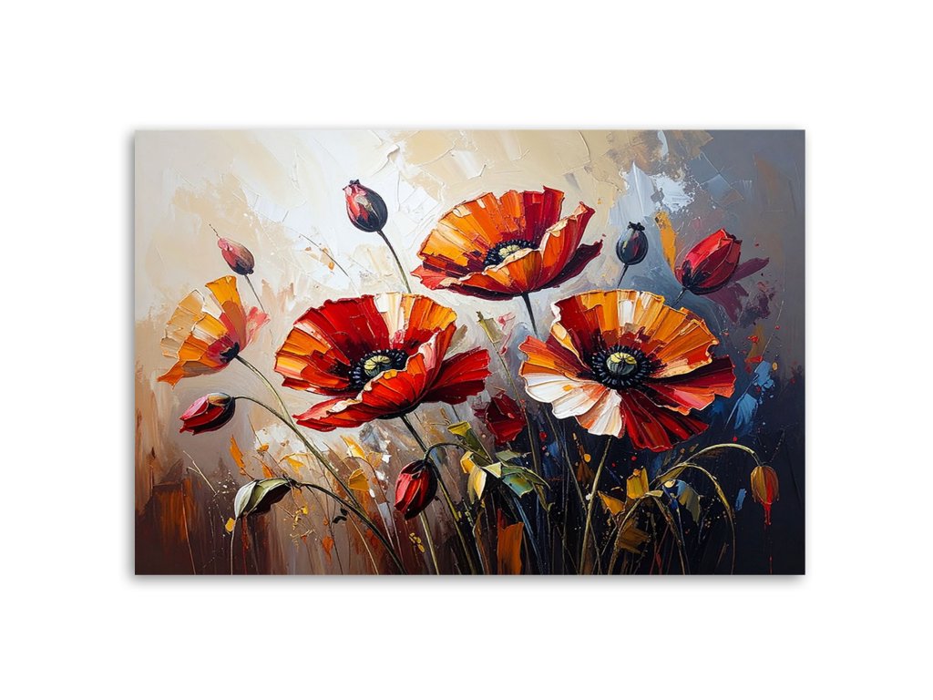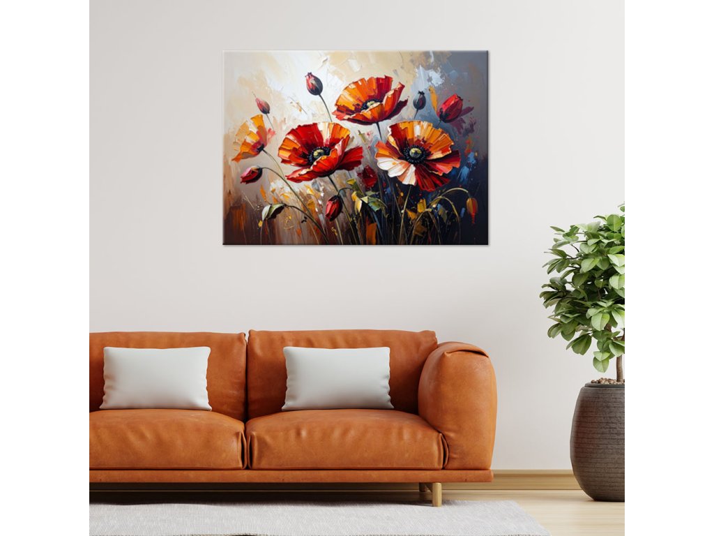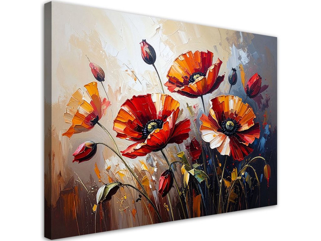 Obraz na plátne Červené maky na béžovom pozadí efekt farby