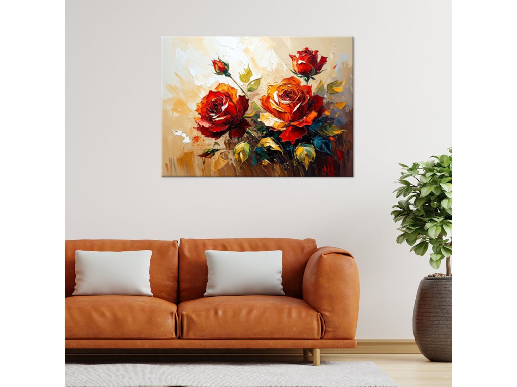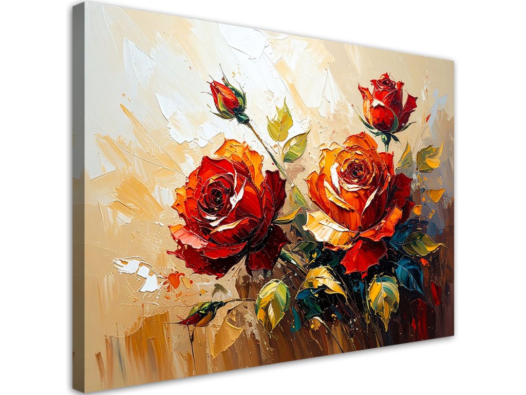 Obraz na plátne Červené ruže Kvety na béžovom pozadí efekt farby