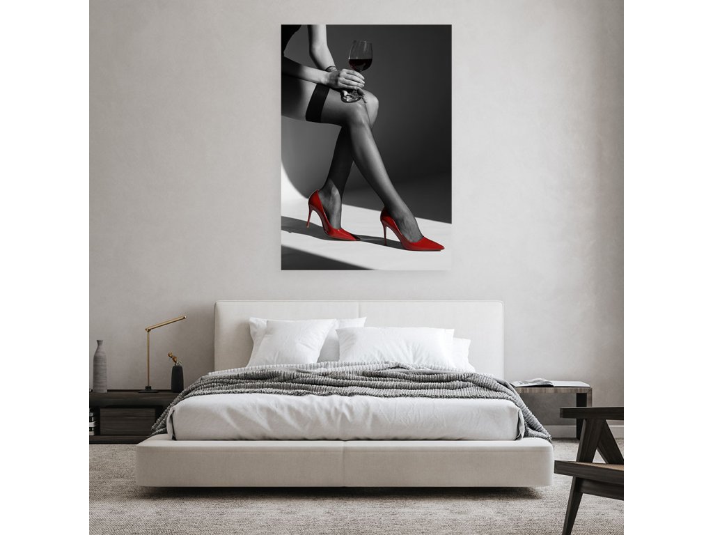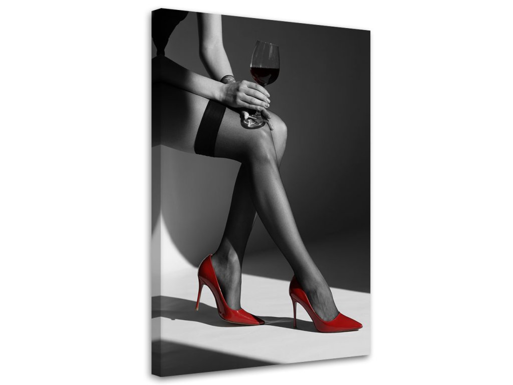Obraz na plátne Elegantná žena s pohárom vína na vysokých podpätkoch
