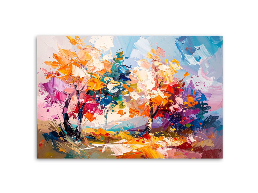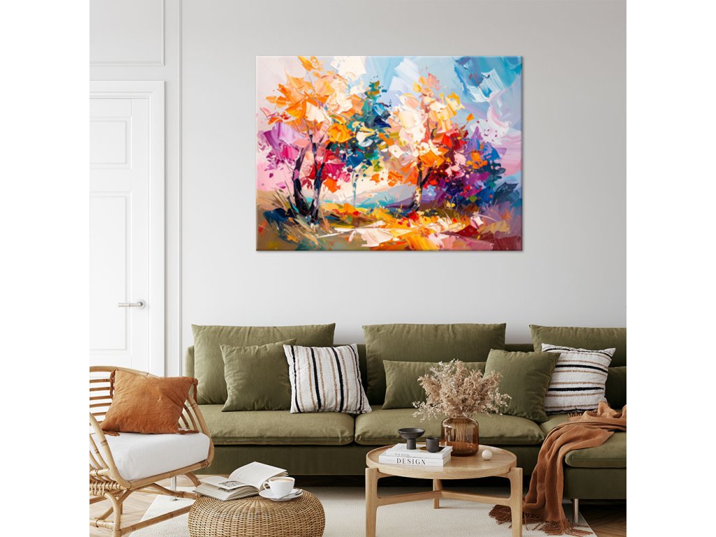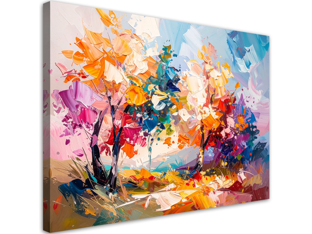 Obraz na plátne Farebná krajina Stromy Les imitácia olejovej farby