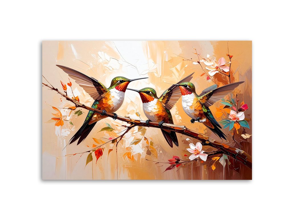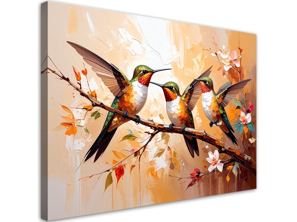 Obraz na plátne Farebné kolibríky vtáky na béžovom pozadí