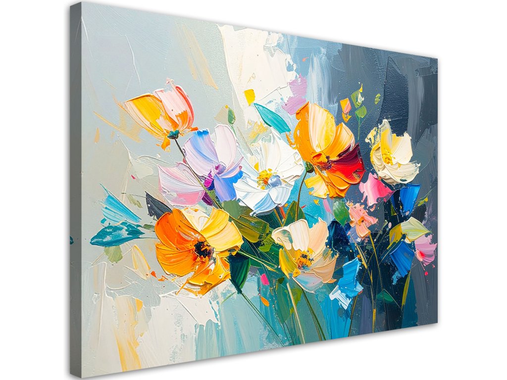 Obraz na plátne Farebné kvety imitácia olejnej farby