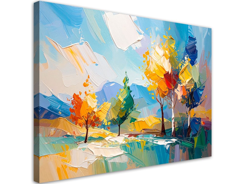 Obraz na plátne Farebný krajina Stromy Les imitácia olejnej farby