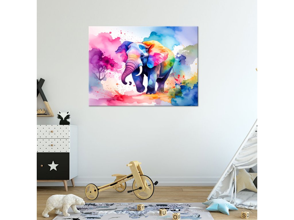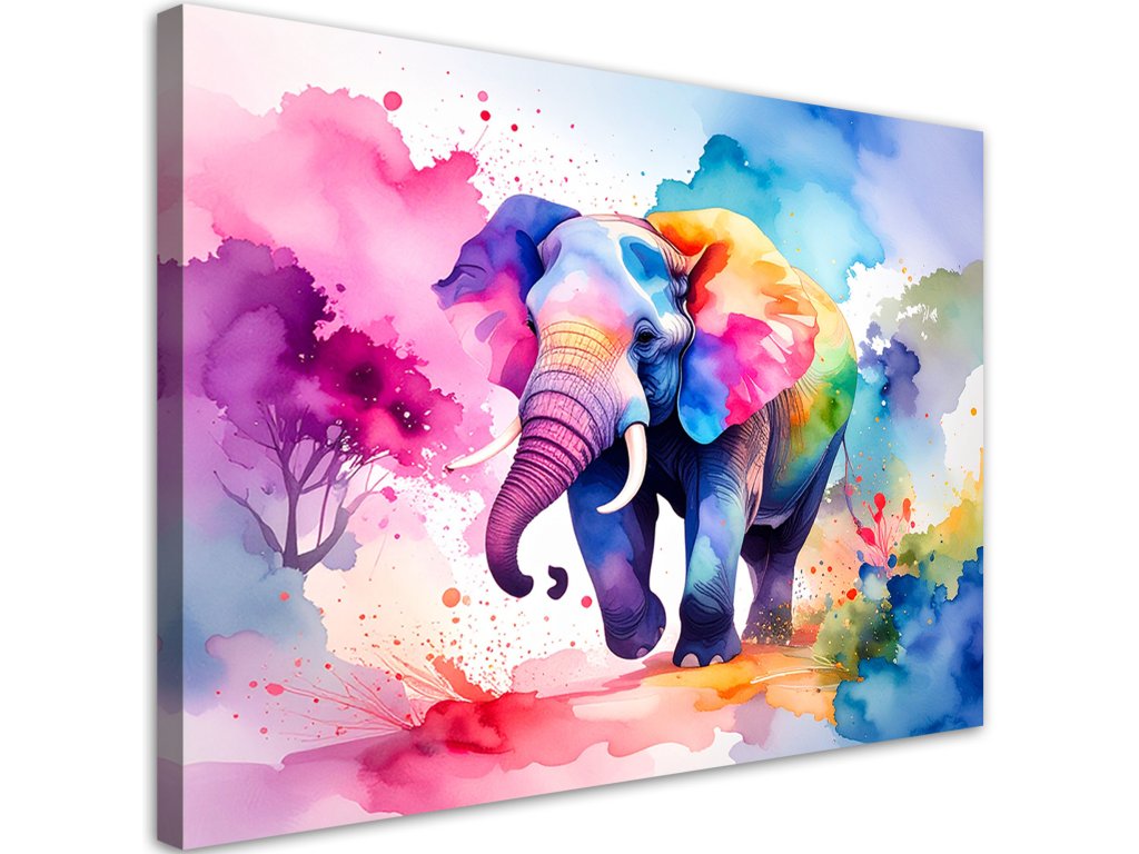 Obraz na plátne Farebný slon Safari Akvarel