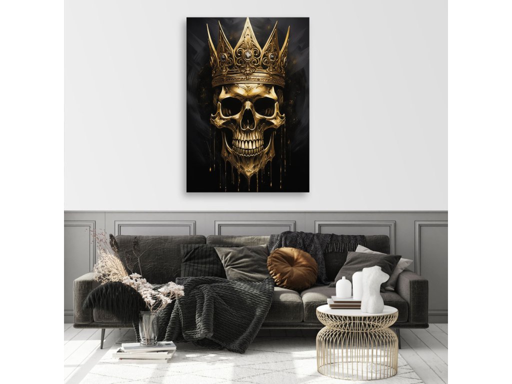 Obraz na plátne Glamour lebky so zlatou korunou