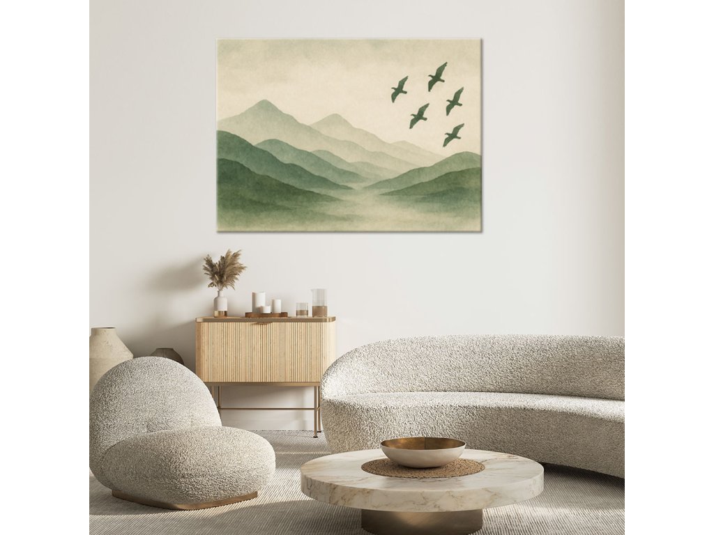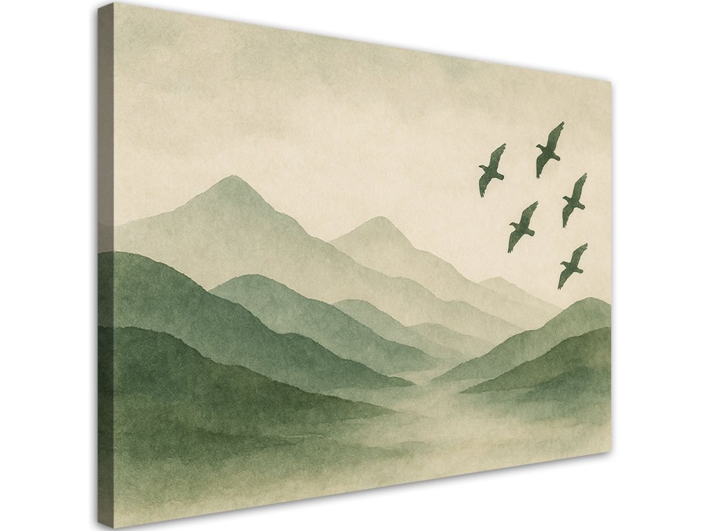 Obraz na plátne Hory Príroda Akvarel Zelená Vtáky