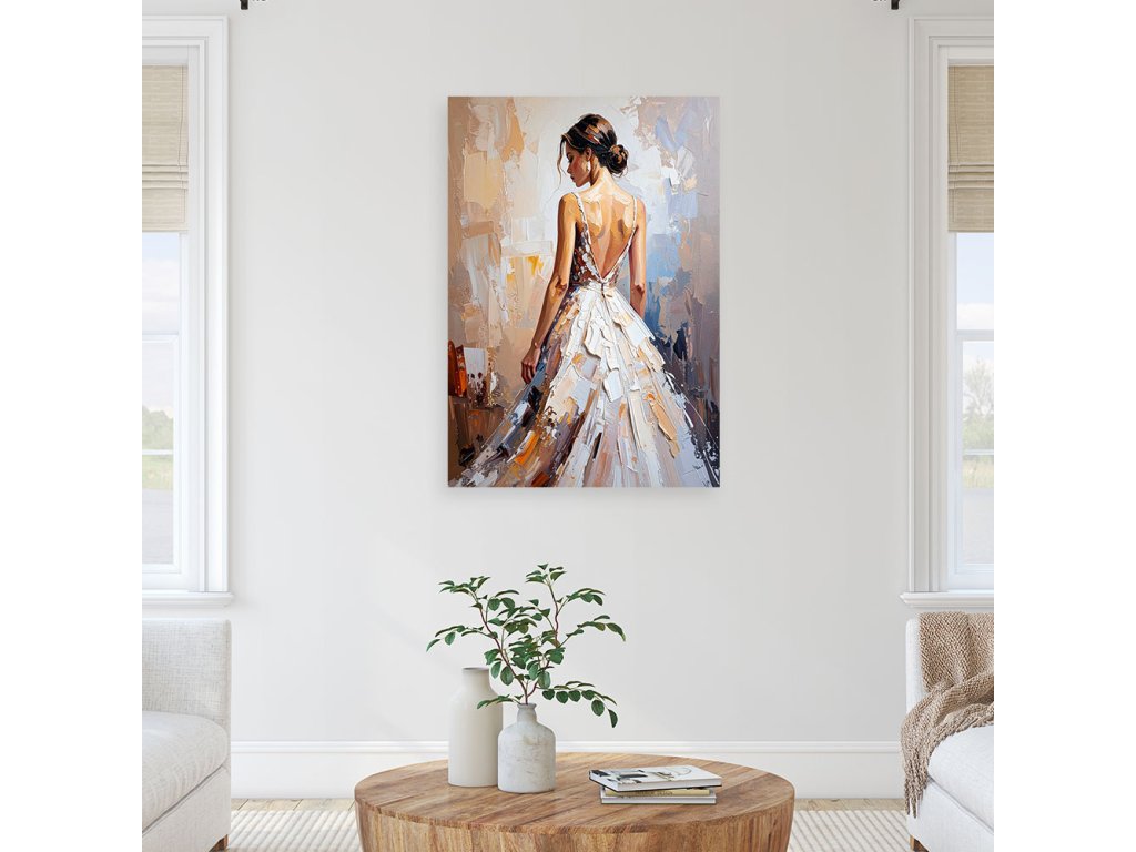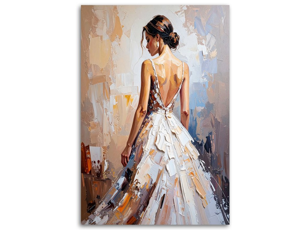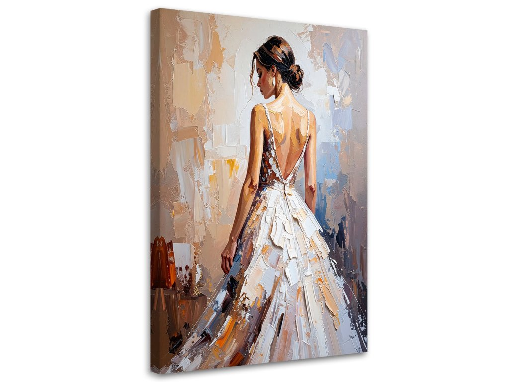 Obraz na plátne Krásna žena v bielych šatách