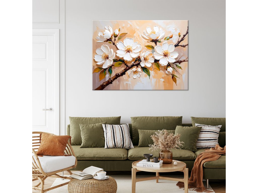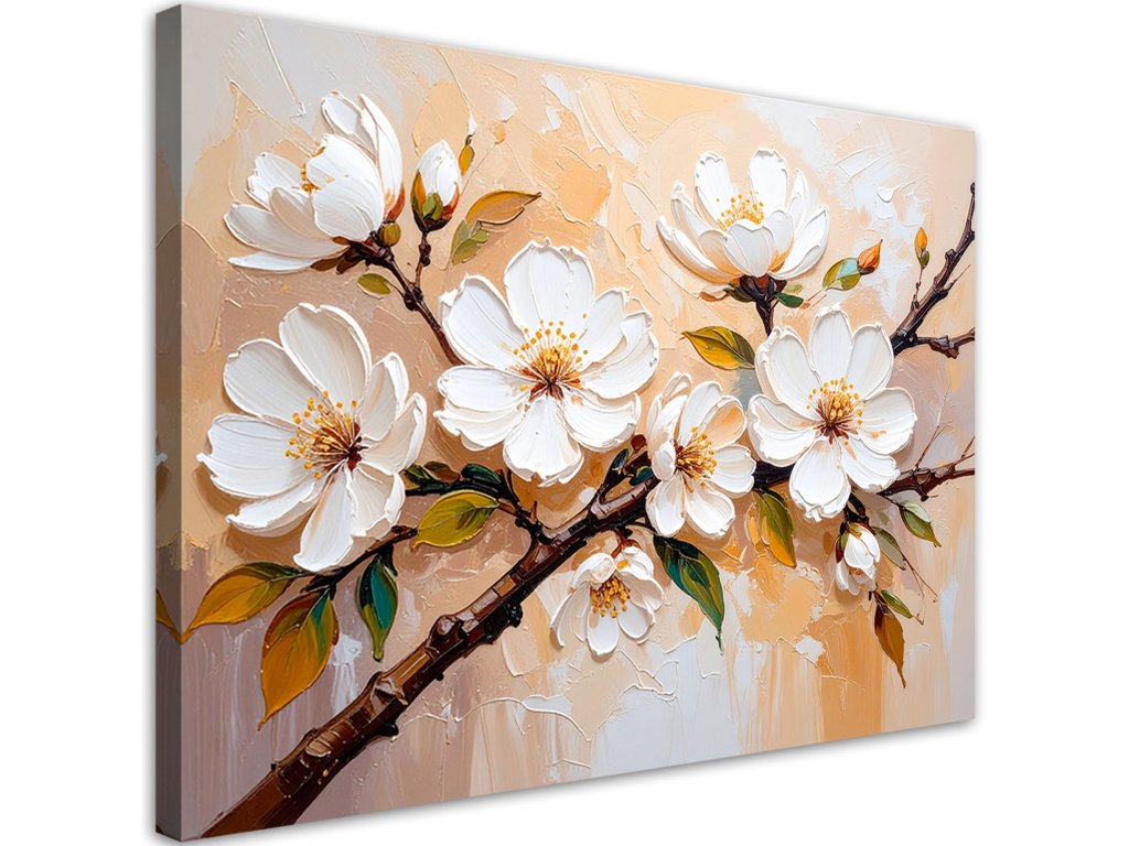 Obraz na plátne Krémové kvety imitácia olejovej farby