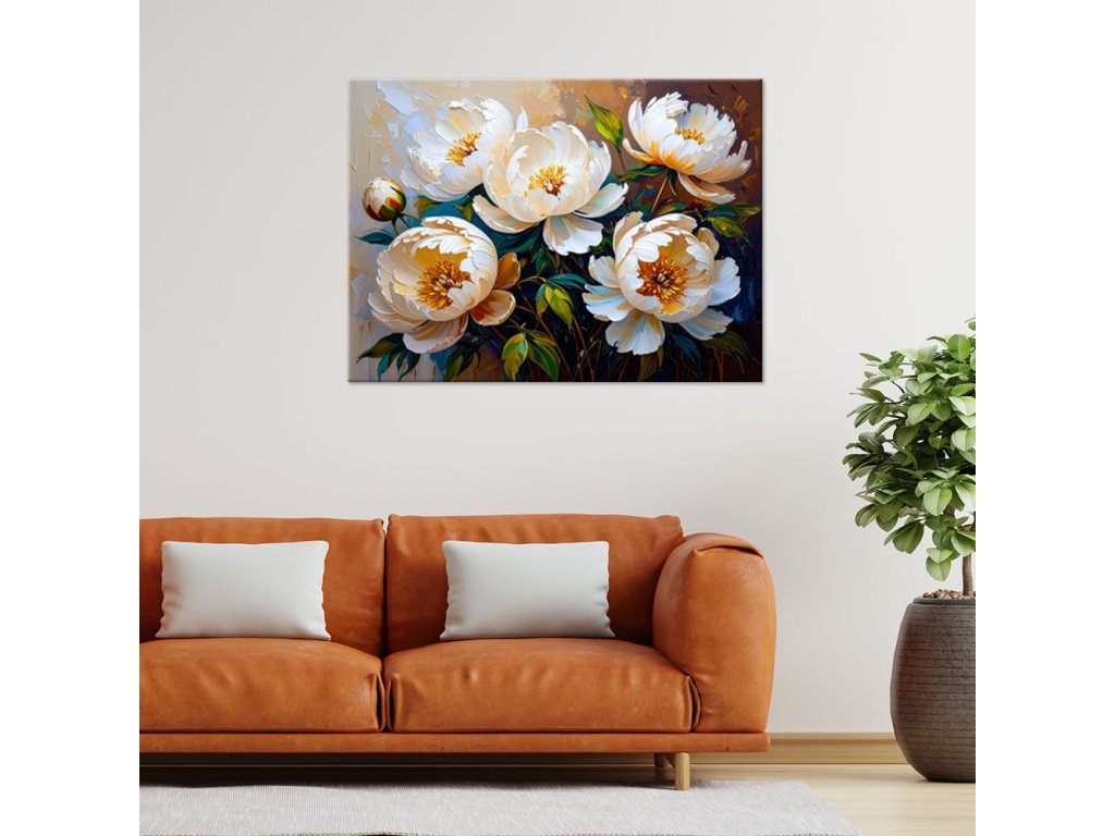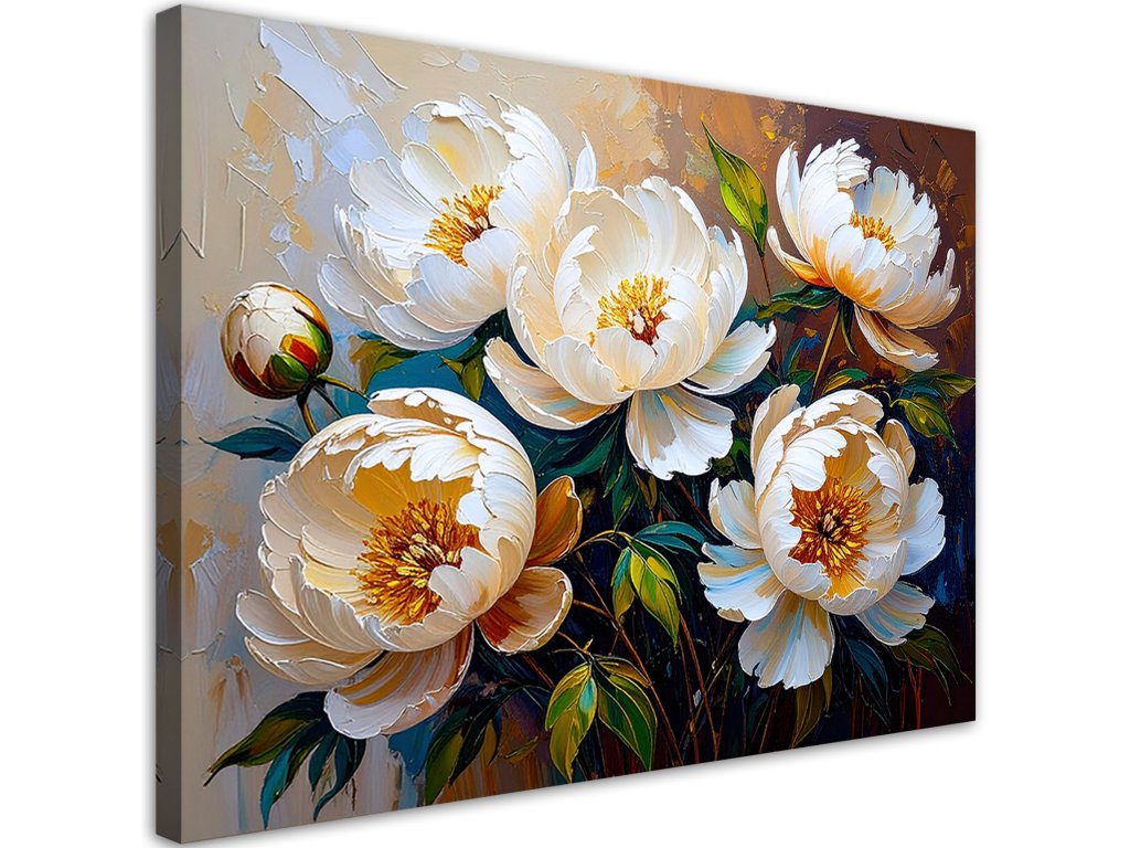 Obraz na plátne Krémové pivonky Kvety na béžovom pozadí
