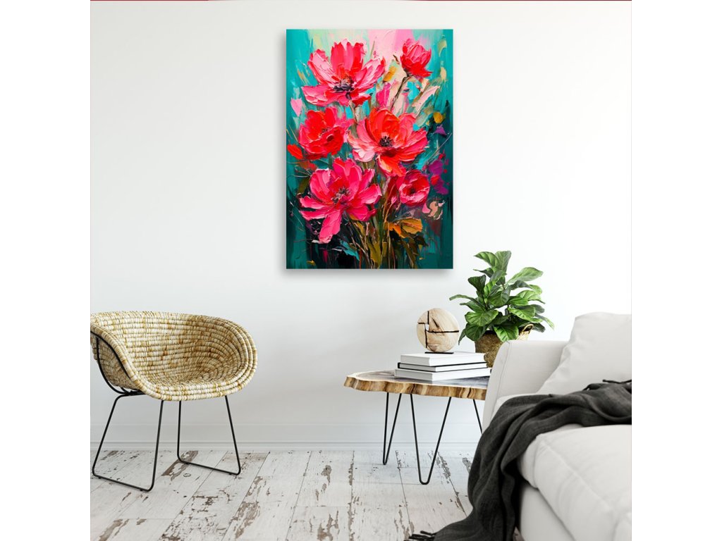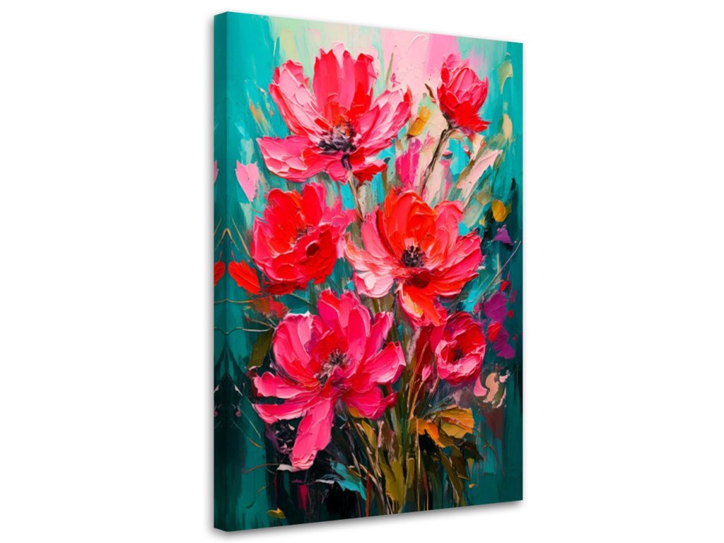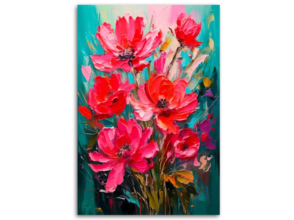 Obraz na plátne Kvety Pulzujúce Akvarel Červená Tirkisová Príroda