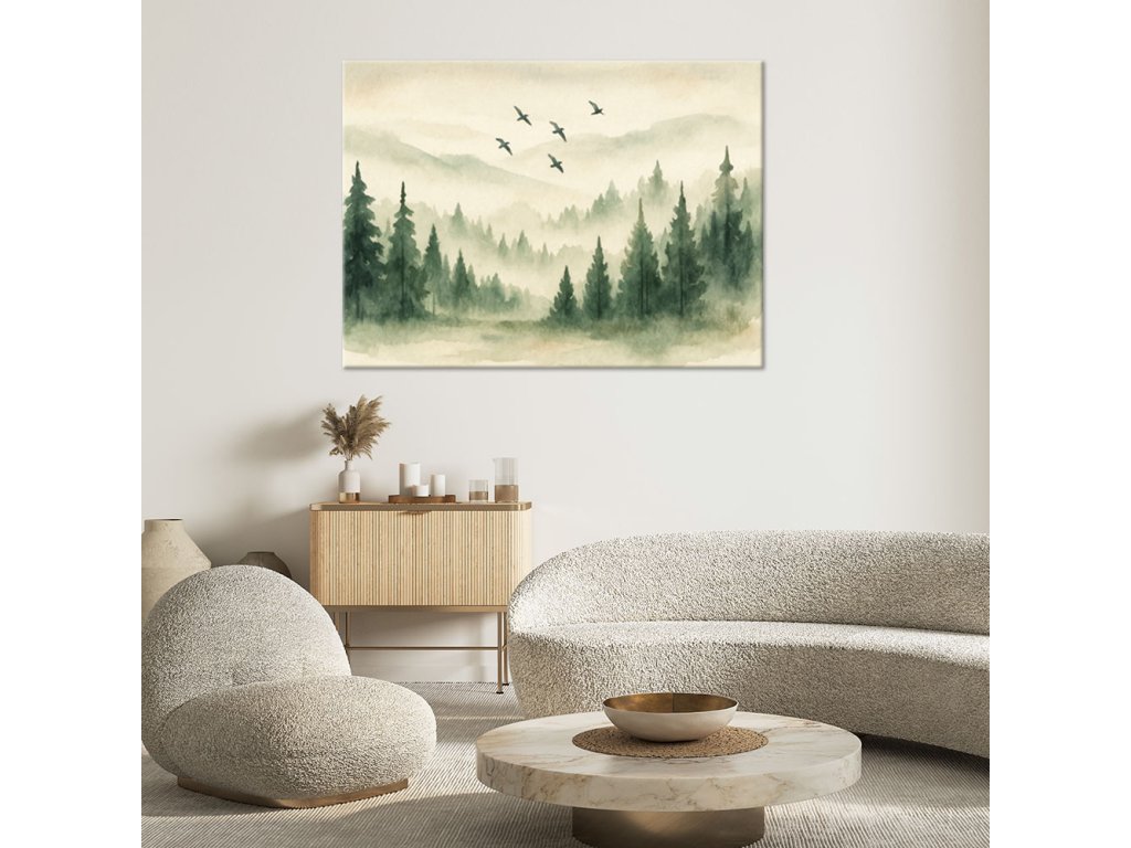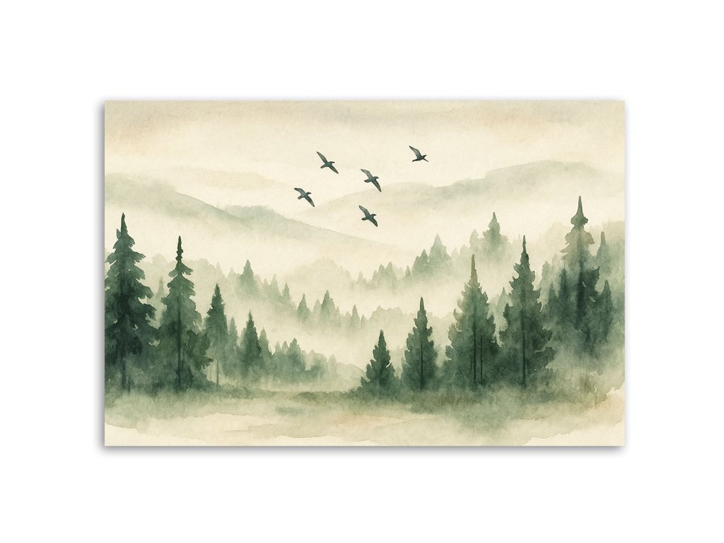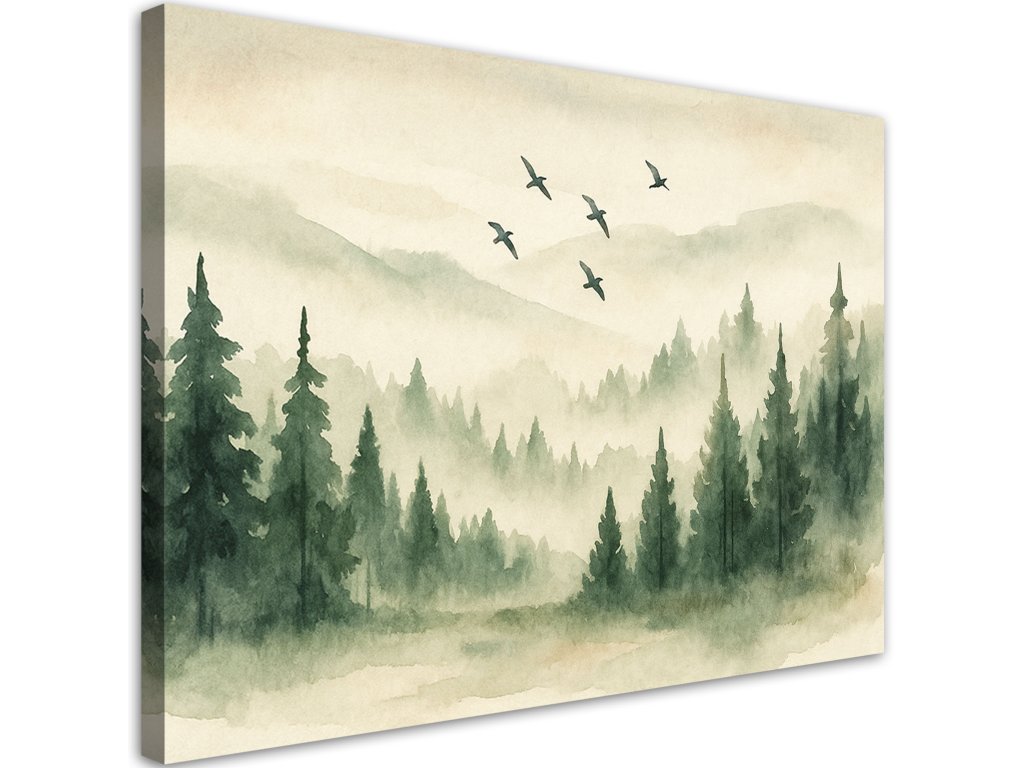 Obraz na plátne Les Hory Vtáky Akvarel Zelená Príroda
