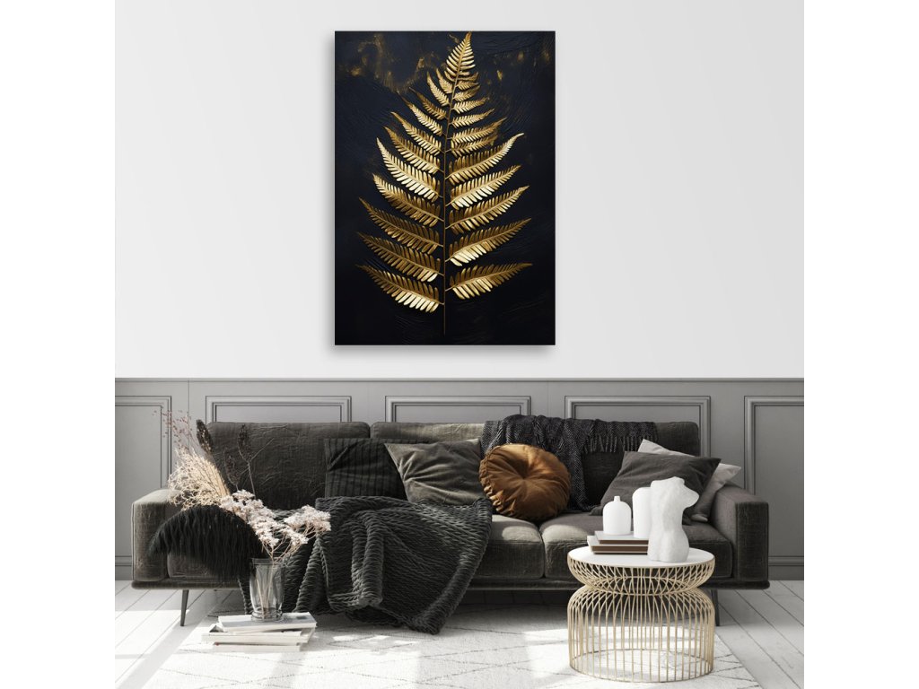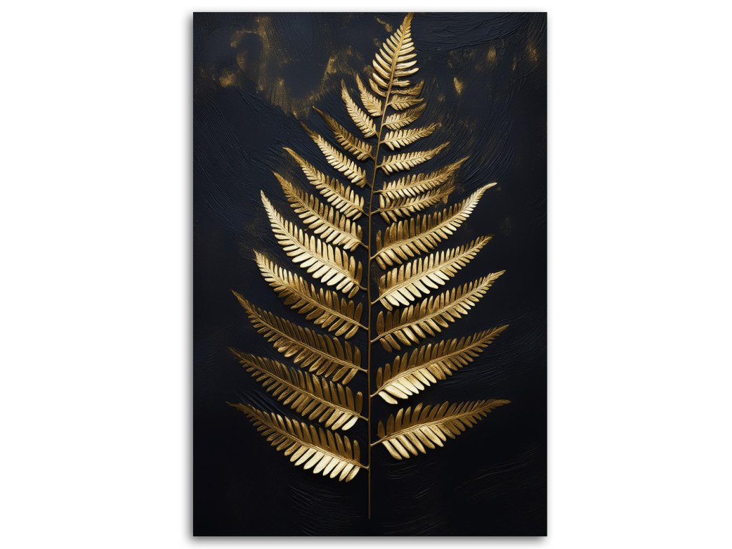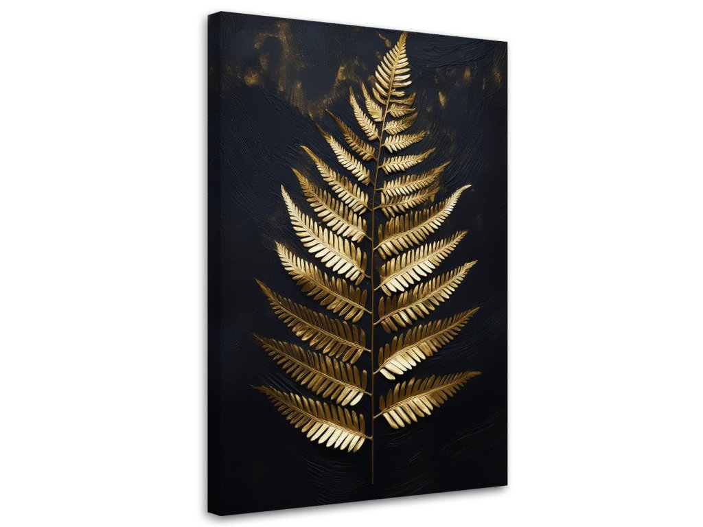Obraz na plátne List zlatého papradia na čiernom pozadí