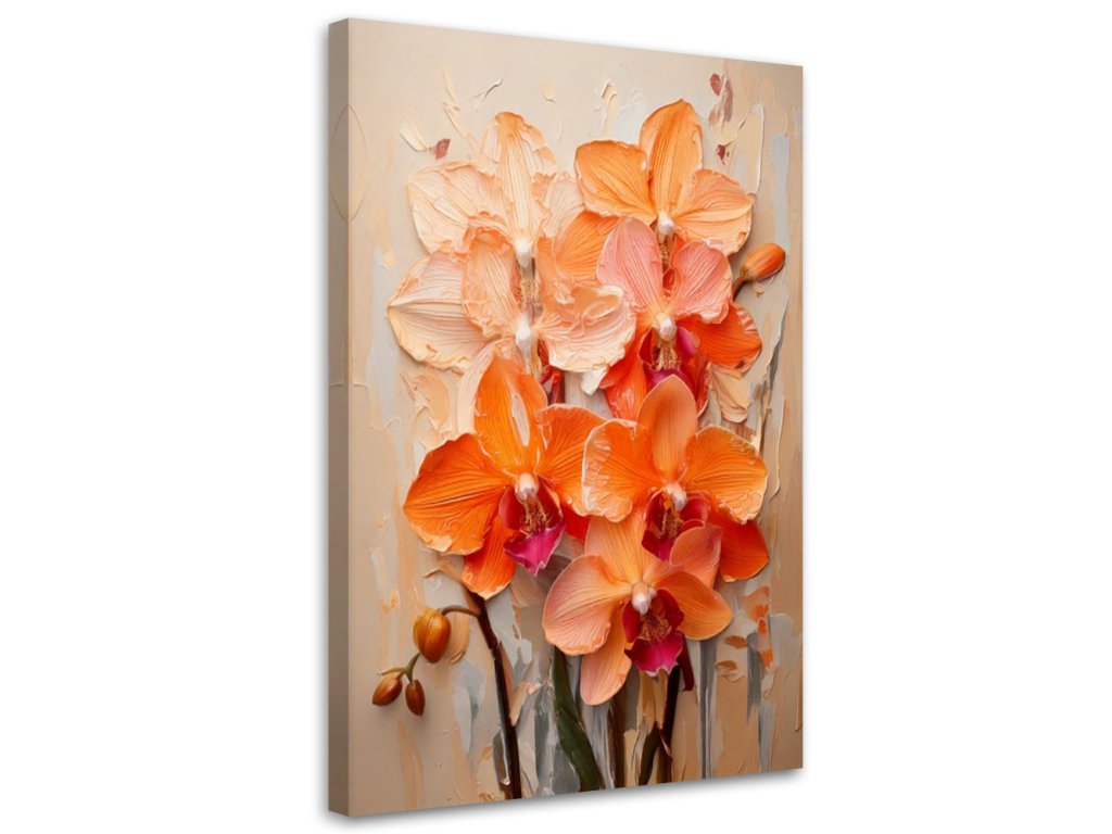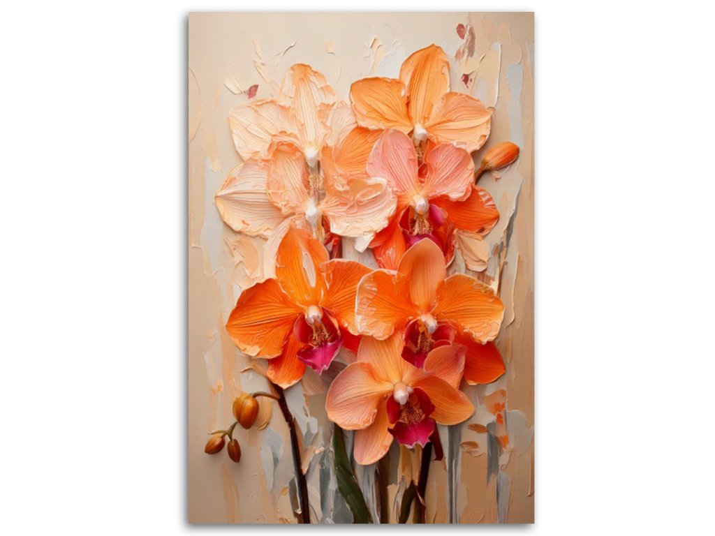 Obraz na plátne Orchidey Oranžová Impasto Kvety Pastelové farby Pozadie