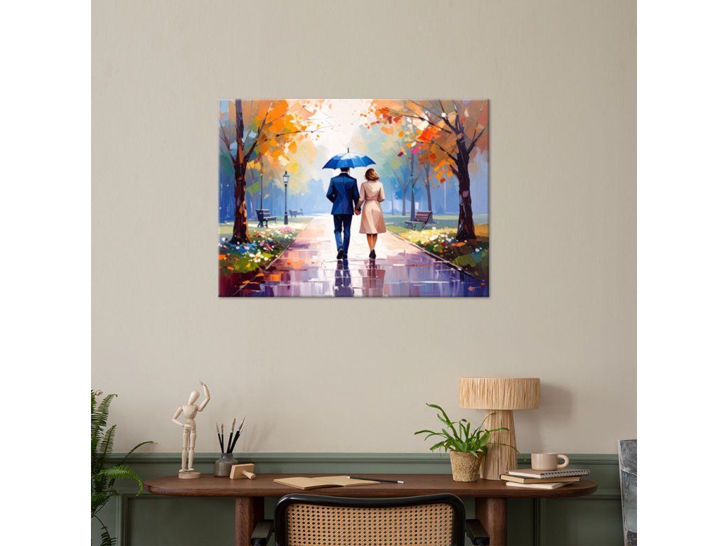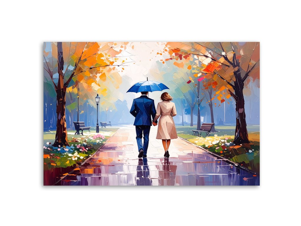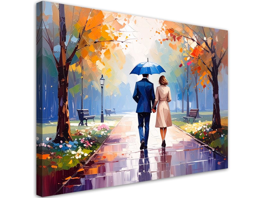 Obraz na plátne Pár na prechádzke v parku