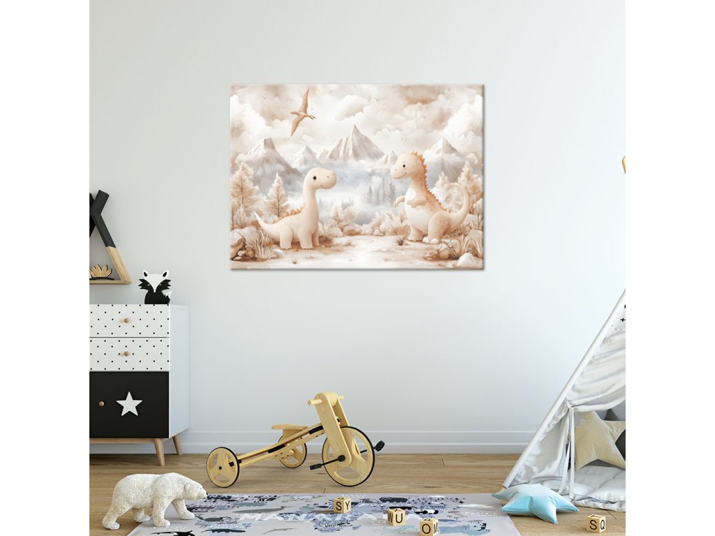 Obraz na plátne Roztomilé malé dinosaury v béžovej farbe