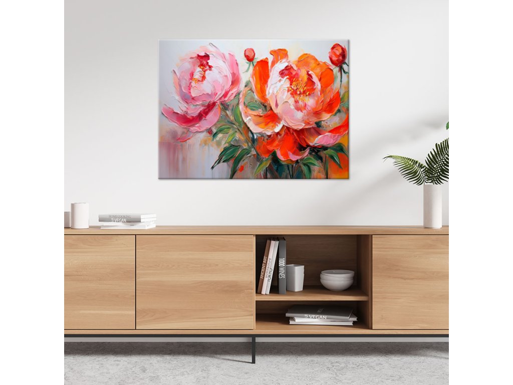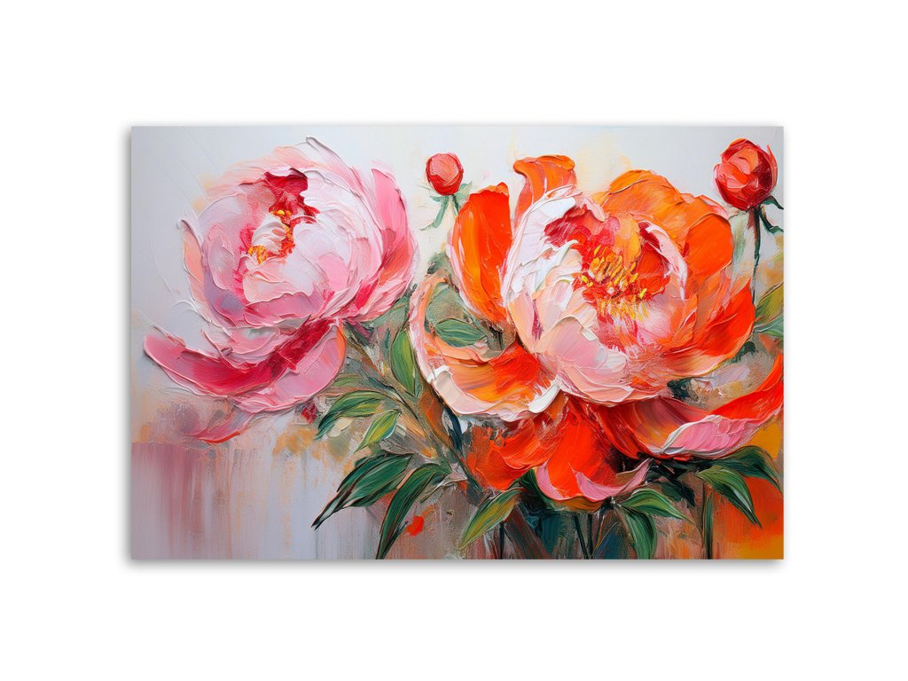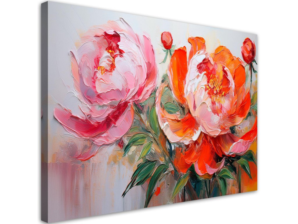 Obraz na plátne Ružové kvety pivonky oranžová