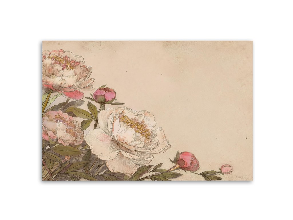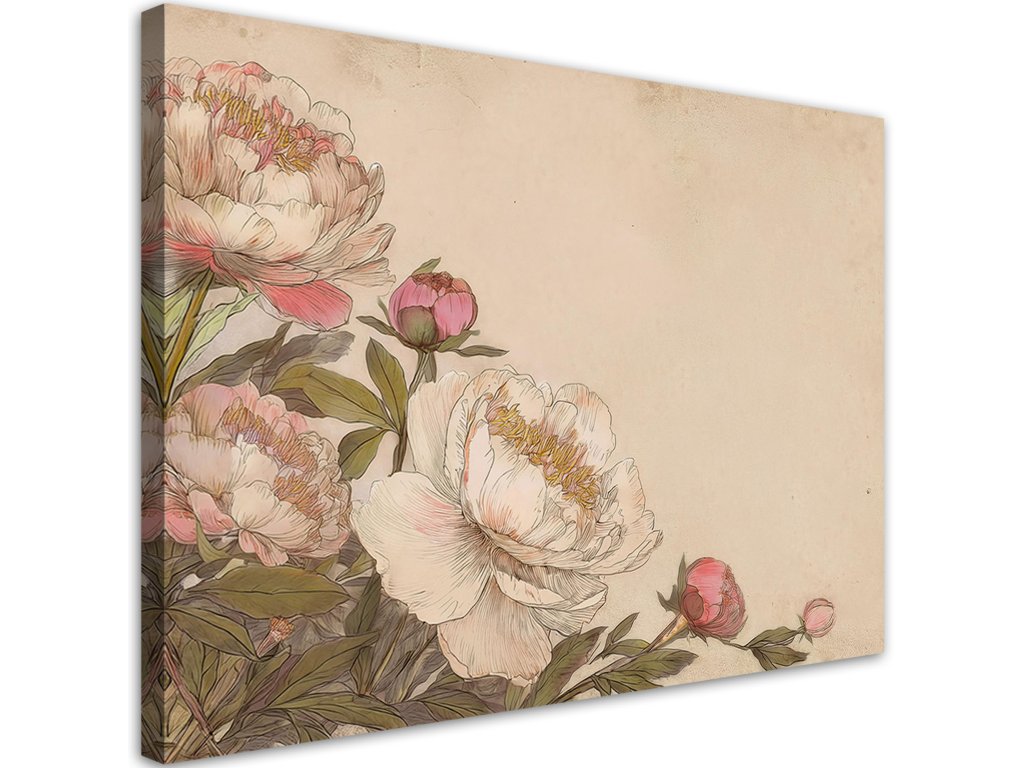 Obraz na plátne Ružové kvety pivonky Retro béžová