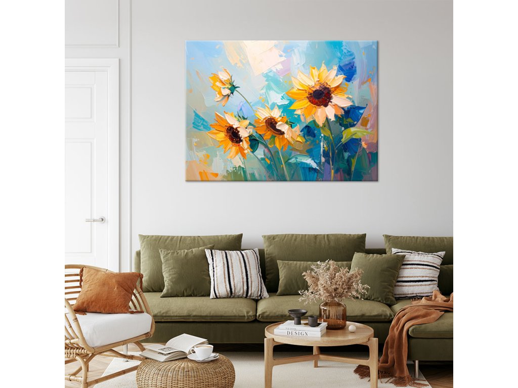 Obraz na plátne Slnečnice Kvety imitácia olejovej farby