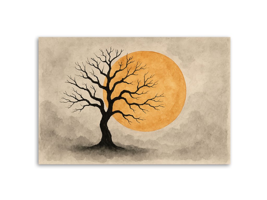 Obraz na plátne Strom Akvarel Mesiac Minimalizmus