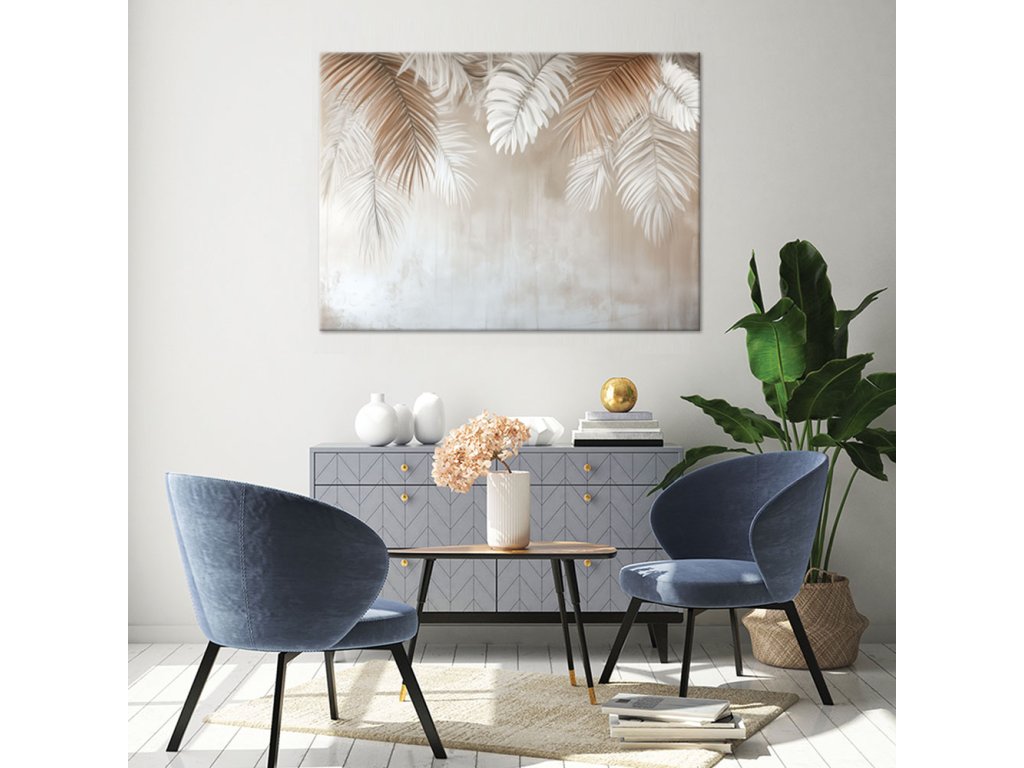 Obraz na plátne Visiace palmové listy na béžovom podklade