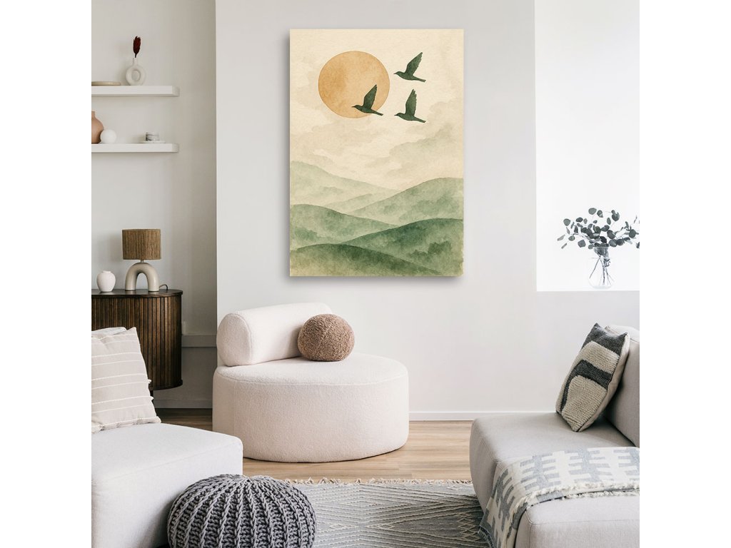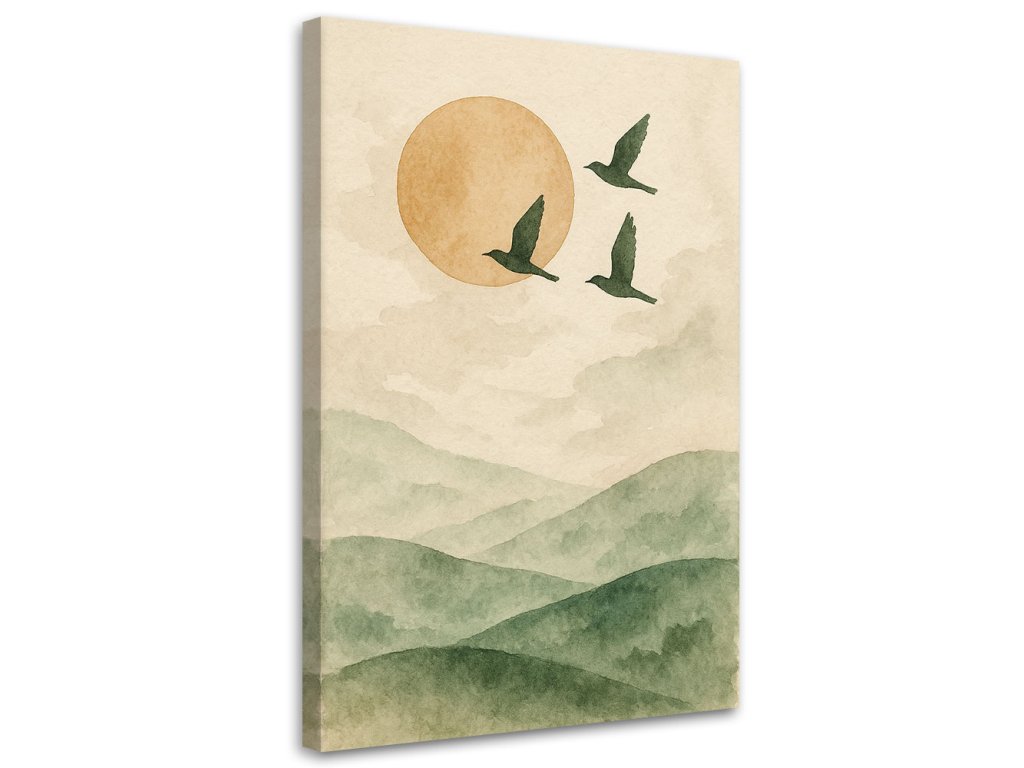 Obraz na plátne Vtáky Hory Akvarel Zelená Béžová