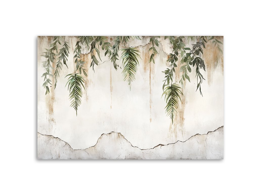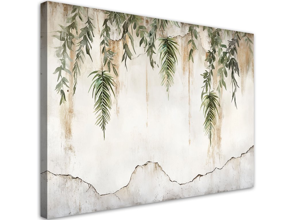 Obraz na plátne Zelené listy visiace na béžovom pozadí