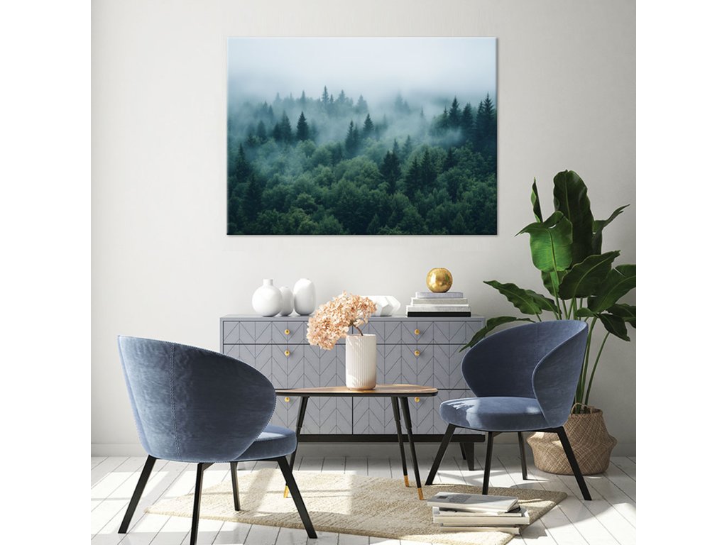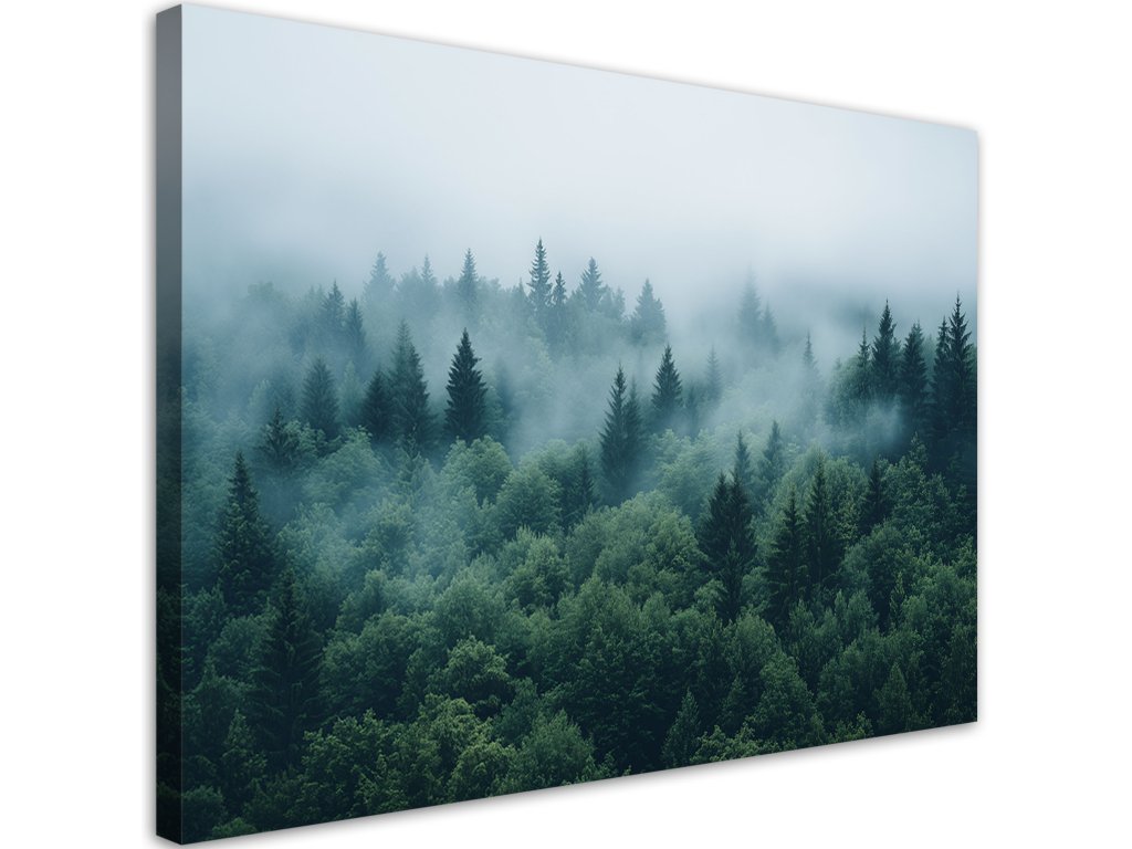 Obraz na plátne Zelený les v hmle prírodnej krajine