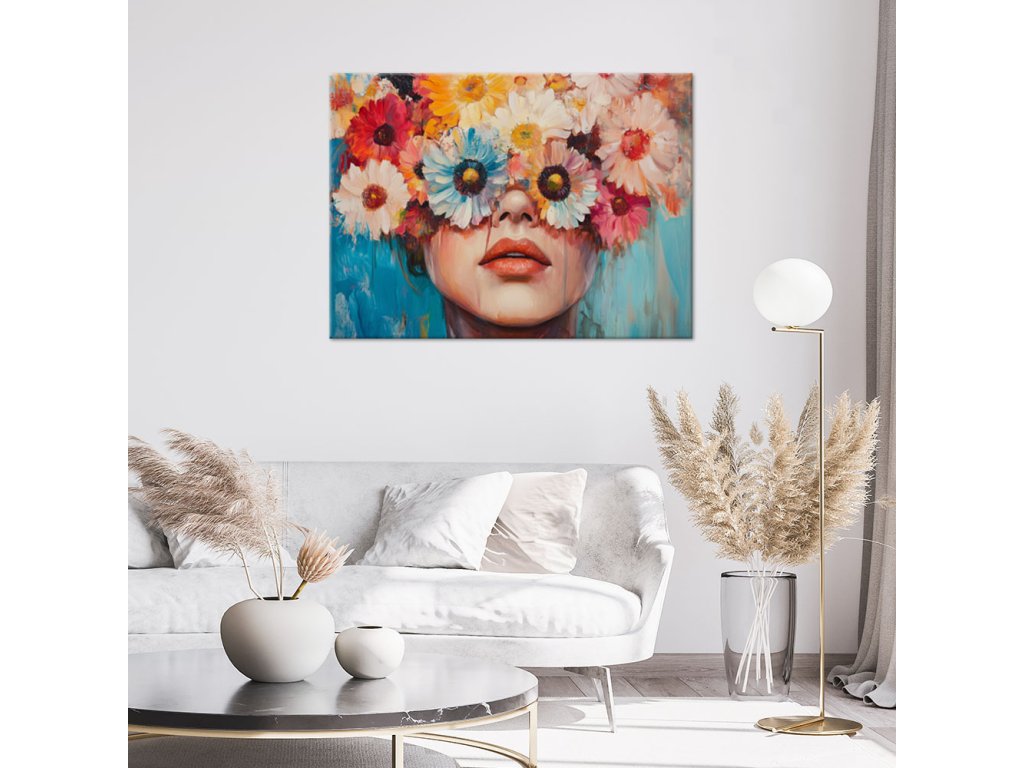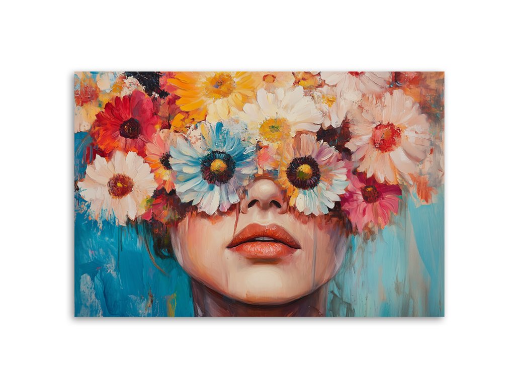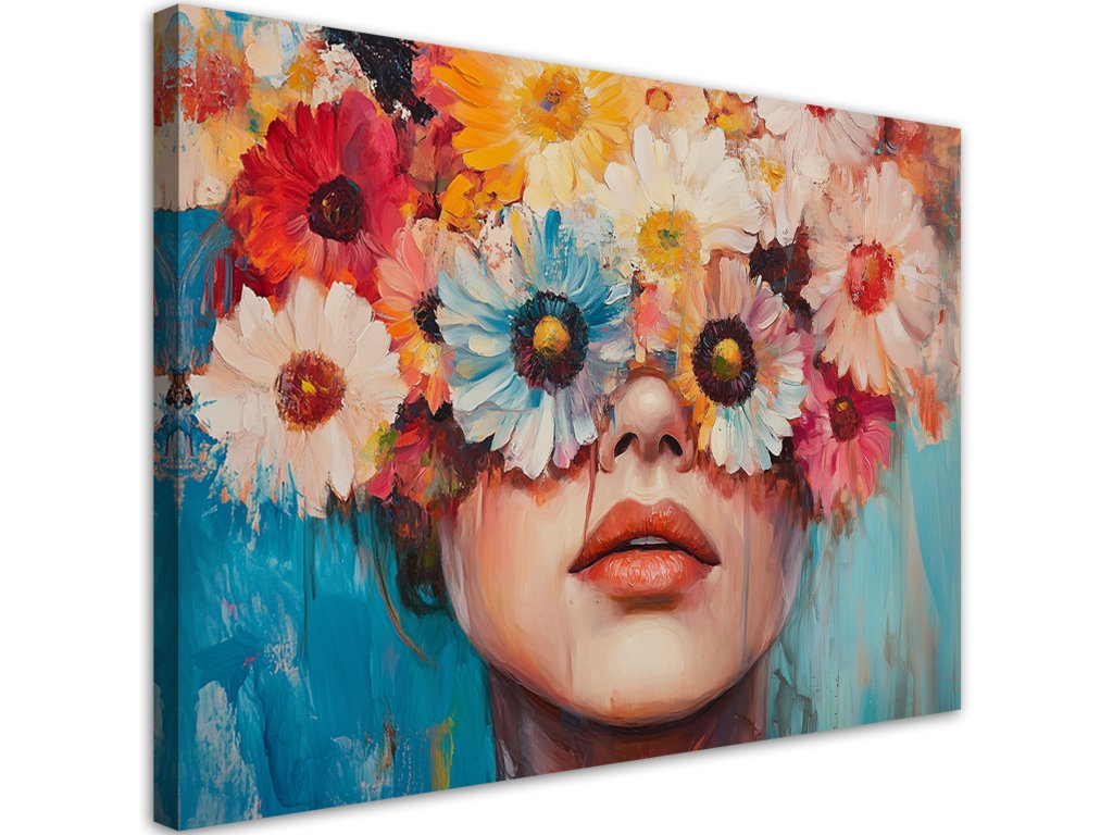 Obraz na plátne Žena s farebnými kvetmi na hlave