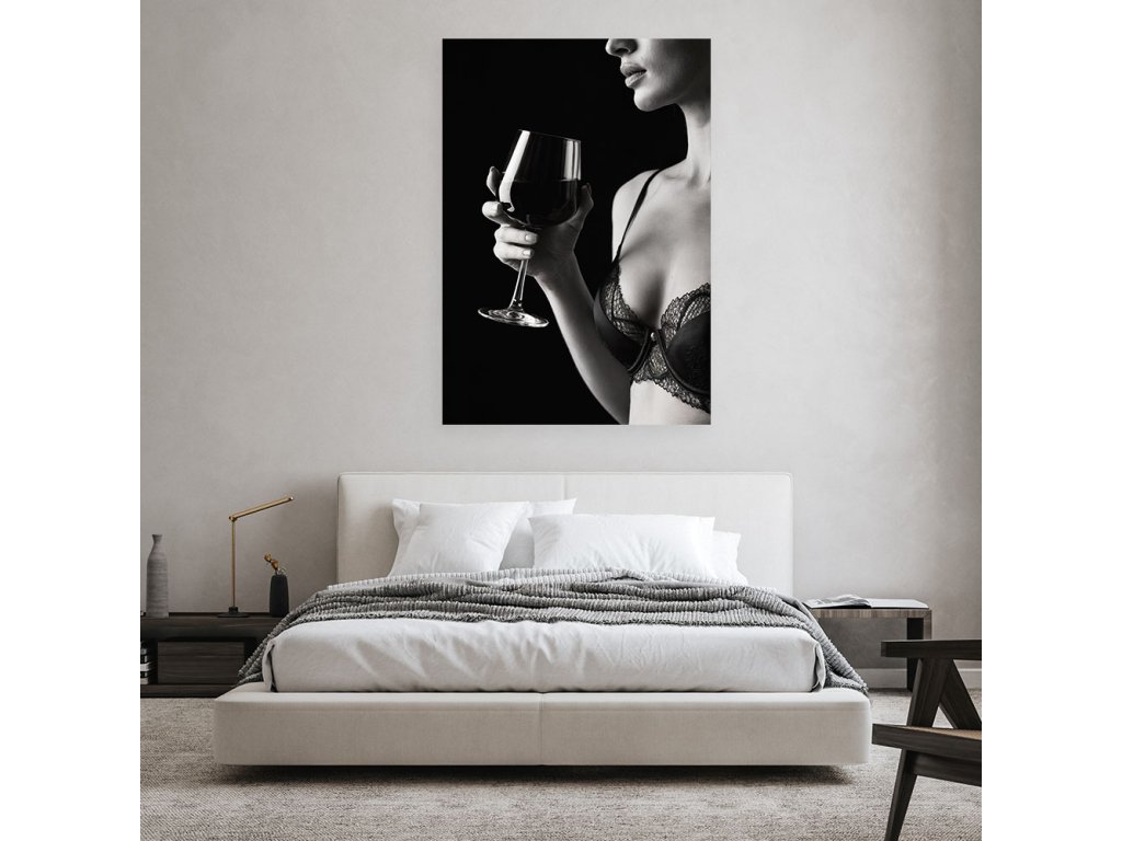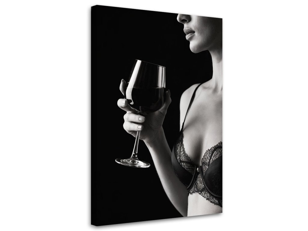 Obraz na plátne Žena v spodnej bielizni s pohárom vína