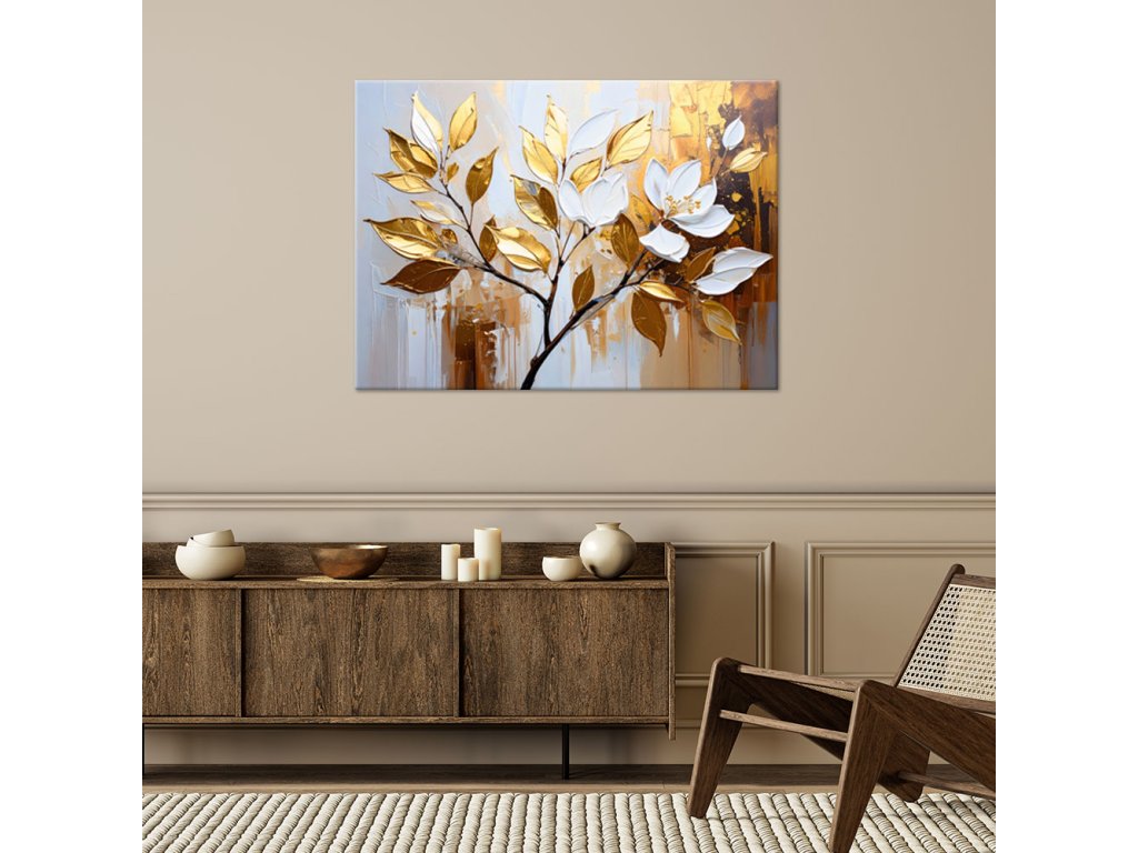 Obraz na plátne Zlaté listy Vetvičky Glamour