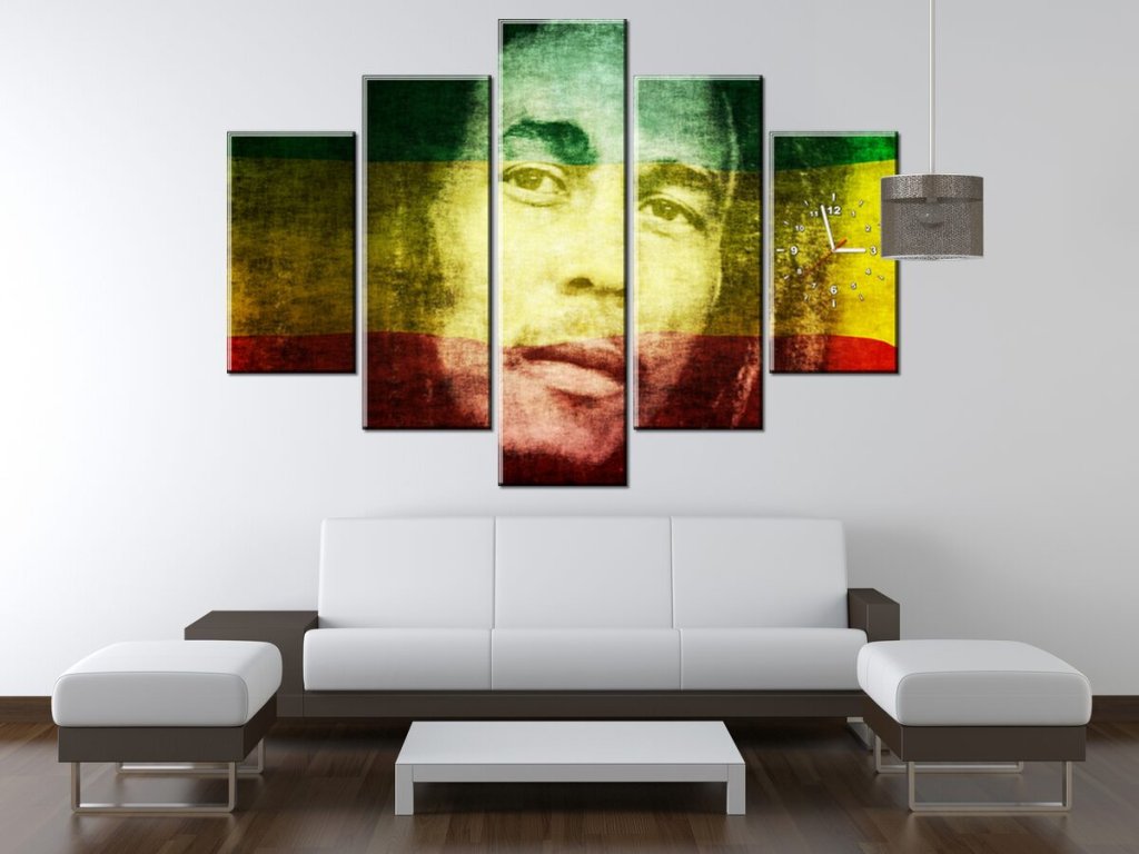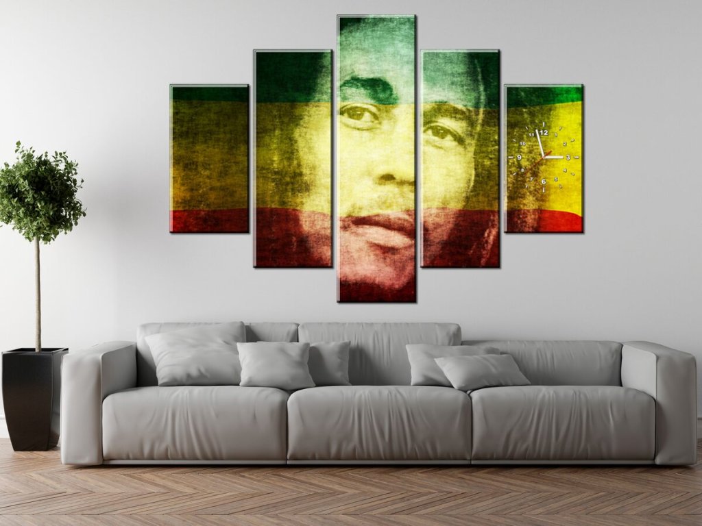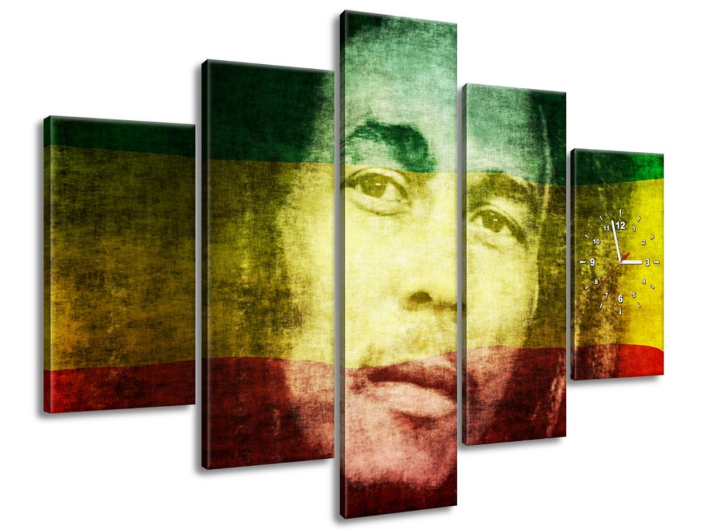 Obraz s hodinami Legendárny Bob Marley - 5 dielny
