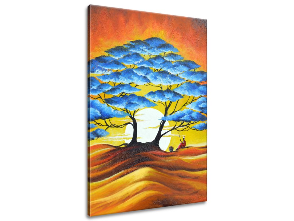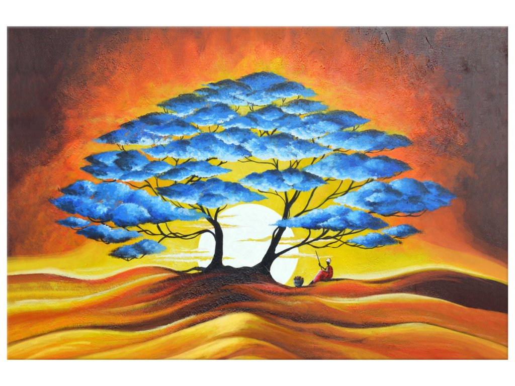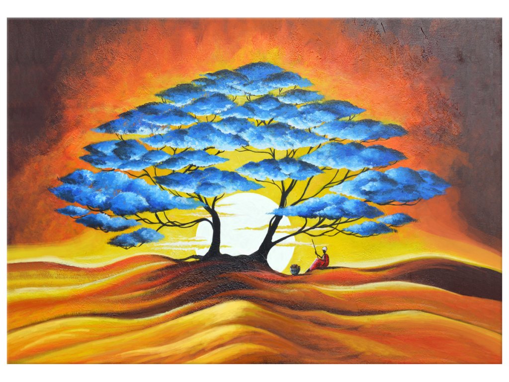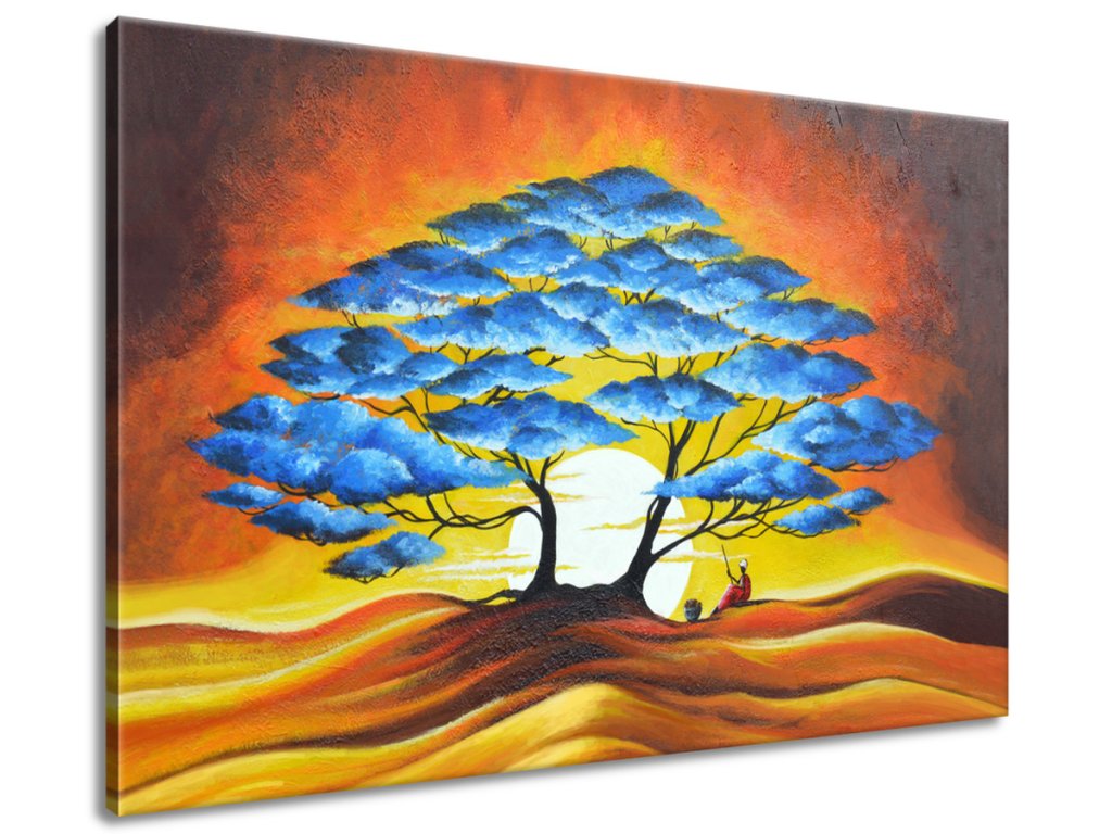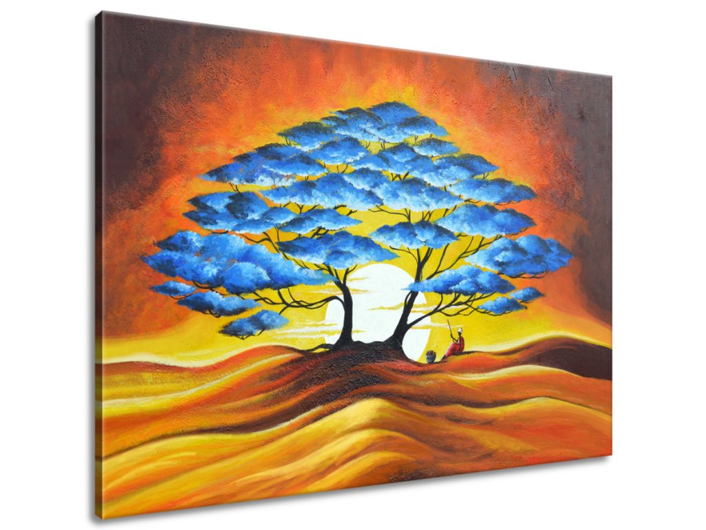Ručne maľovaný obraz Odpočinok pod modrým stromom
