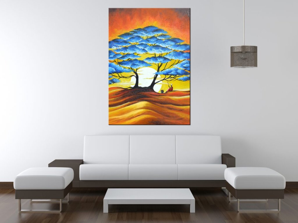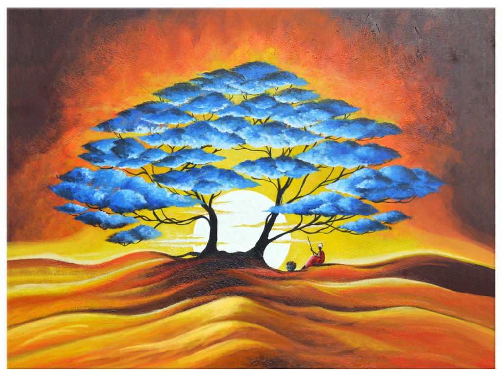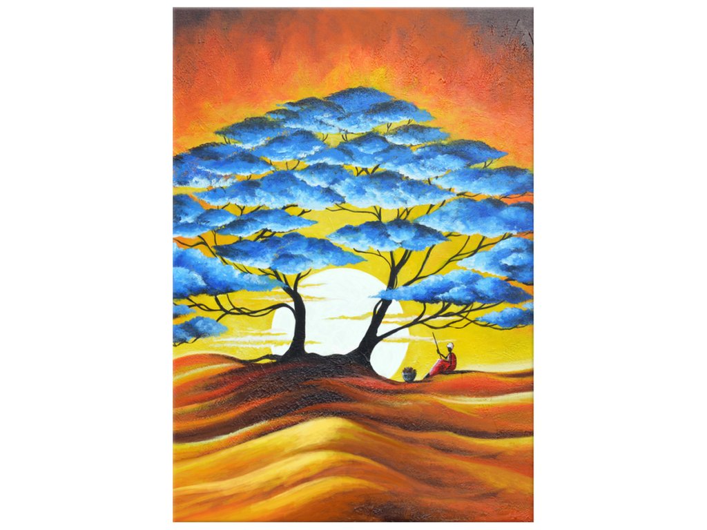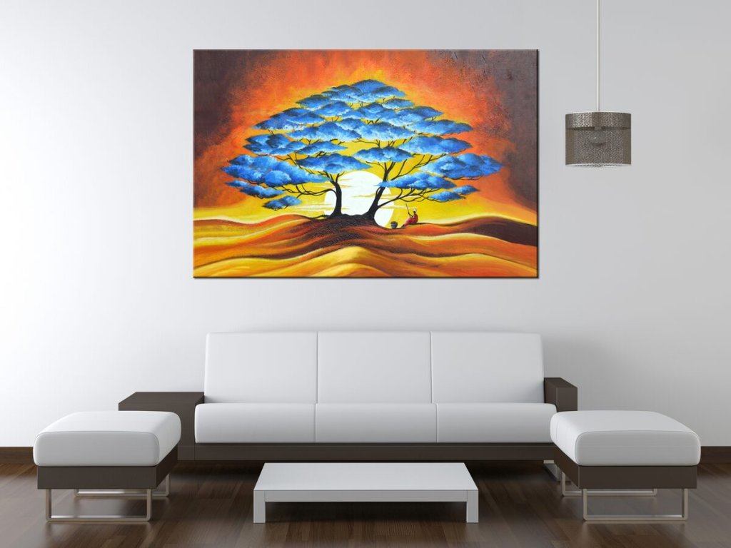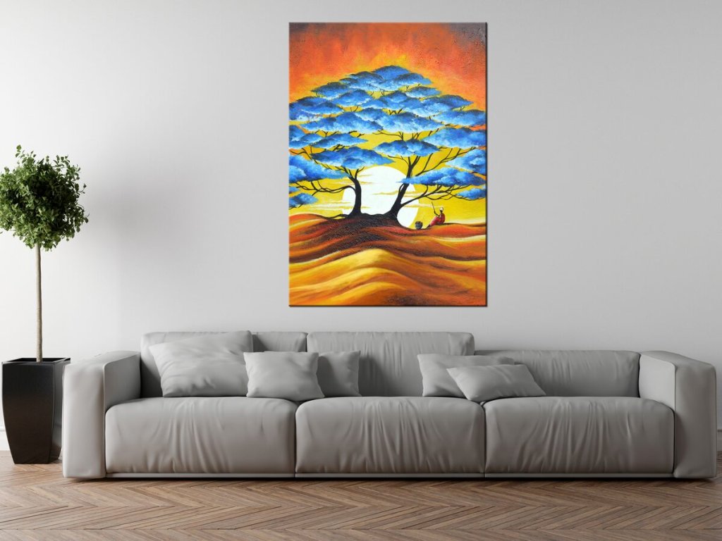 Ručne maľovaný obraz Odpočinok pod modrým stromom